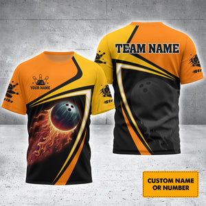 3D Customized Bowling T-shirt Fireball, Gift for Bowler