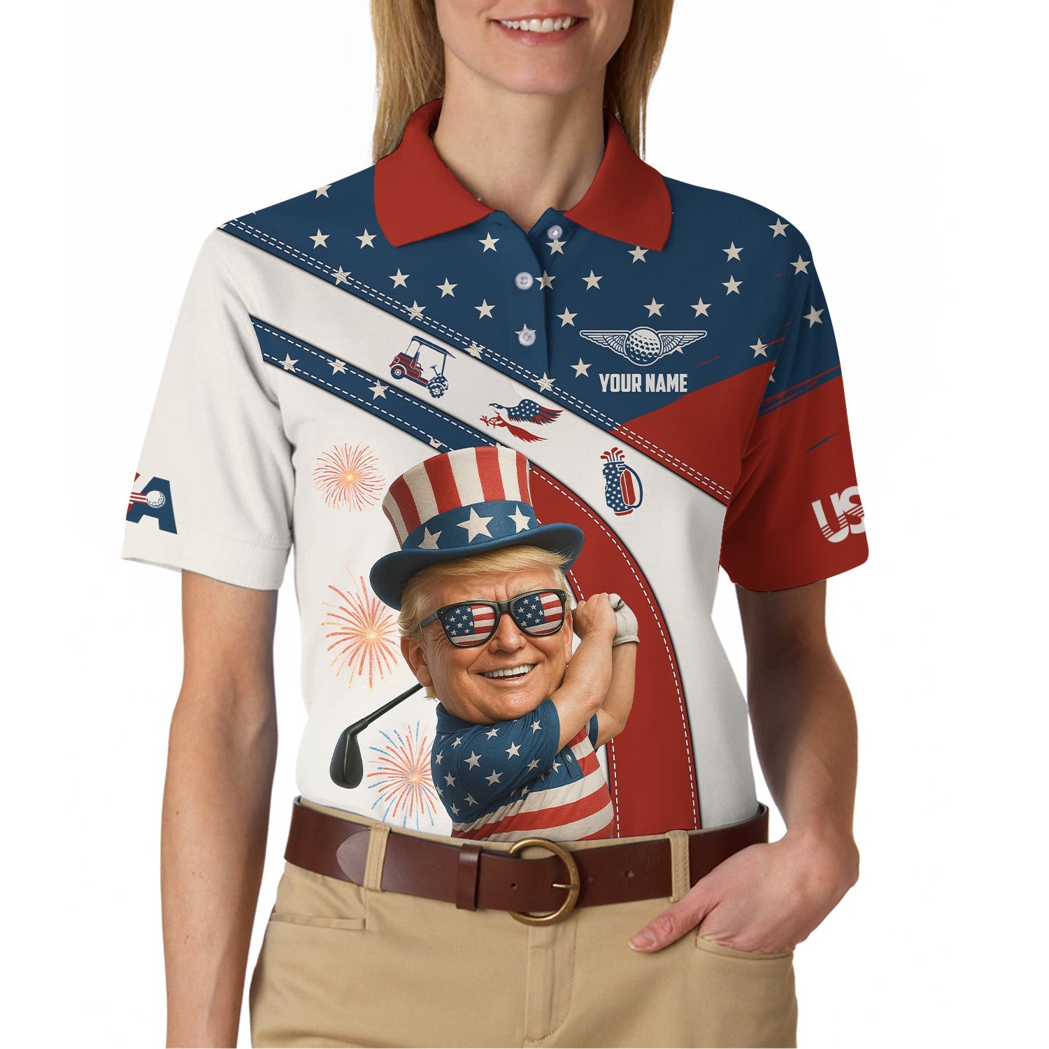 4th Of July Golf Shirt Custom Name, Trump Golf Polos, Patriotic Golf Shirts, Funny Golf Shirt For Men