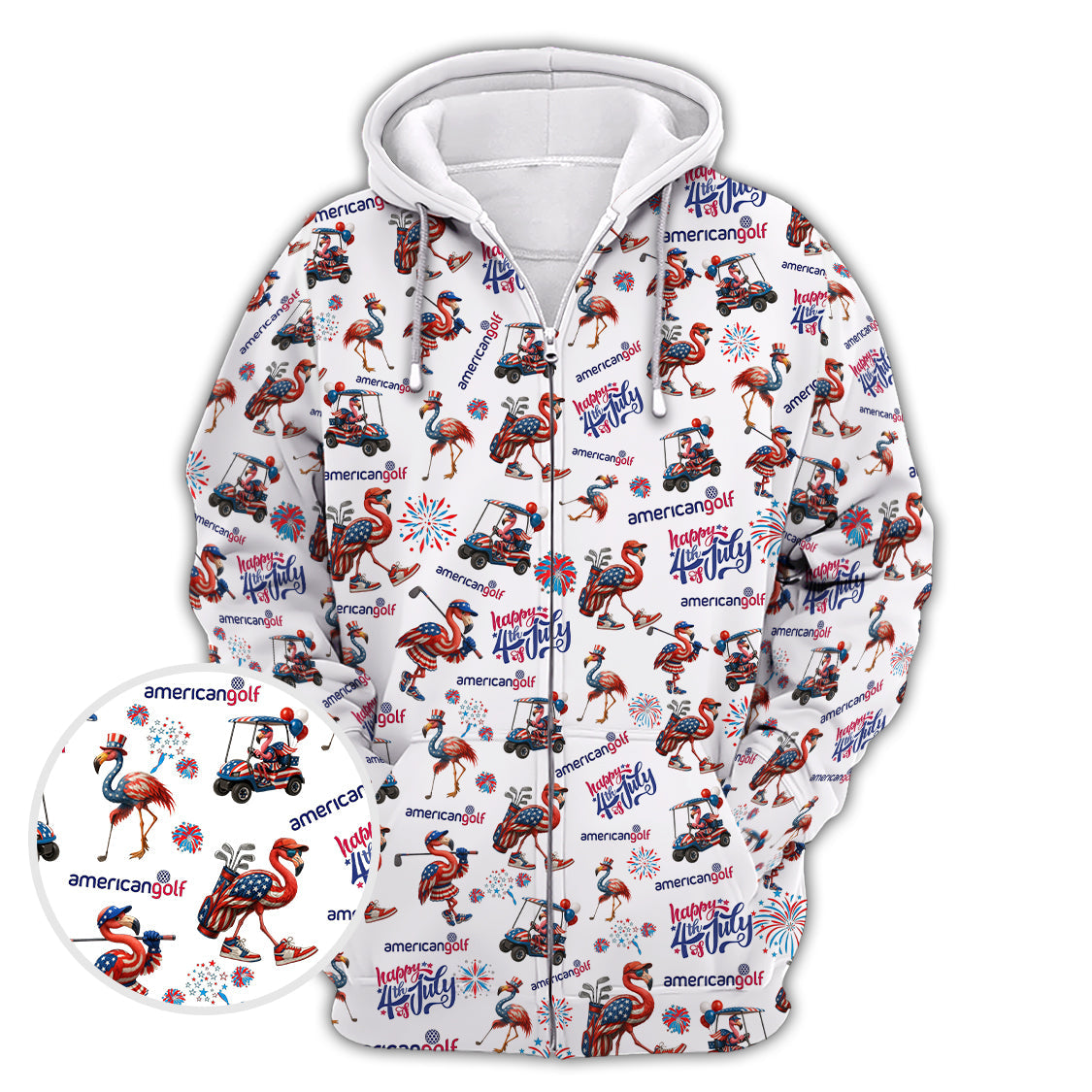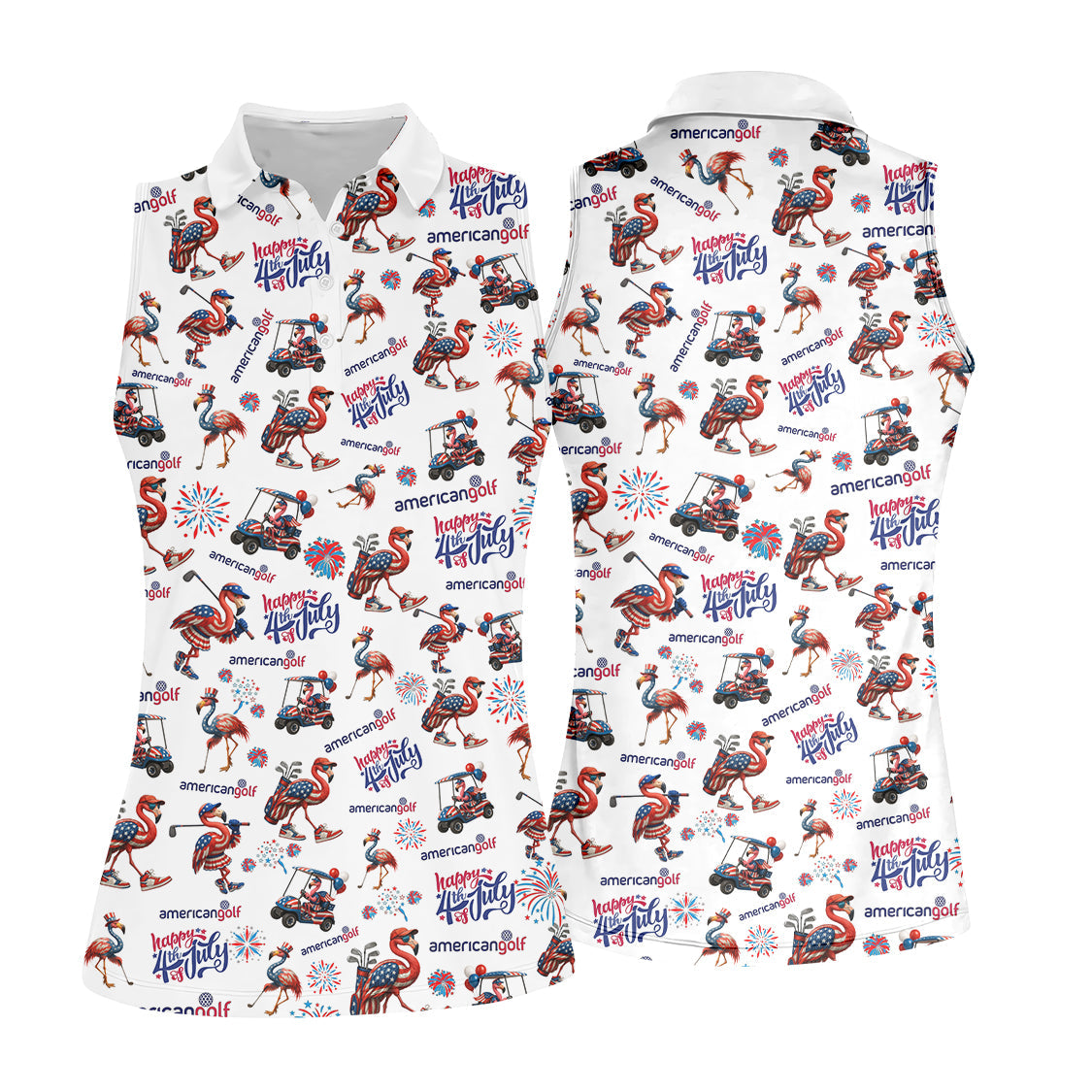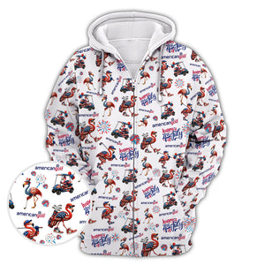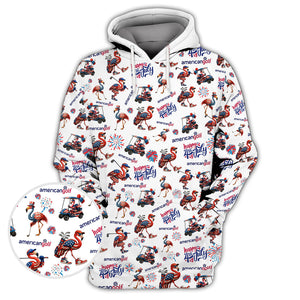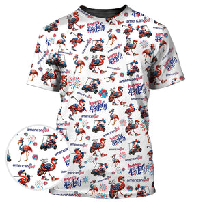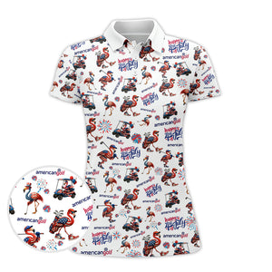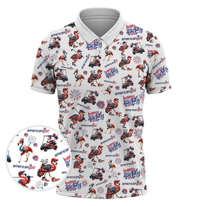 4th of July Golf Shirt – Flamingo Golf Shirt with American Flag – Patriotic Golf Polo for Golfers