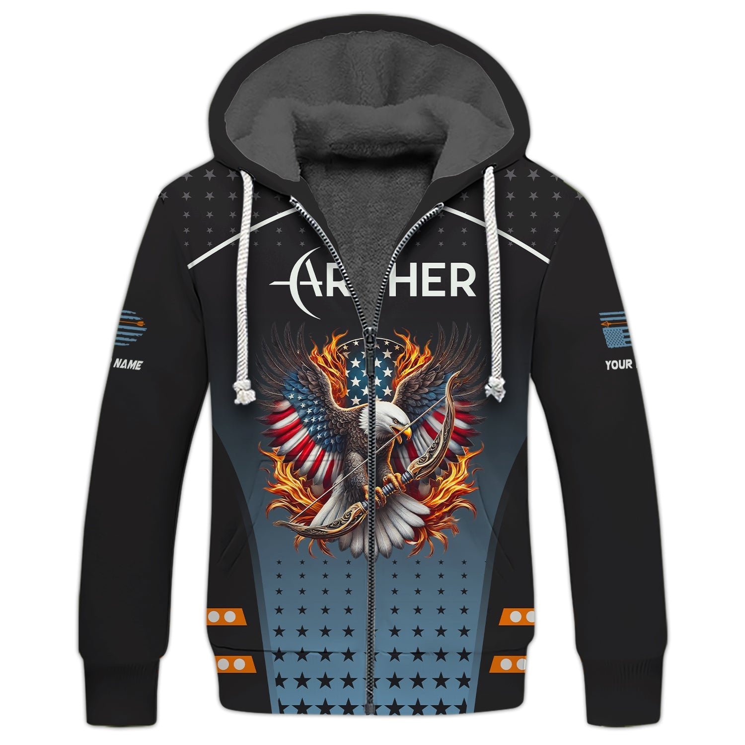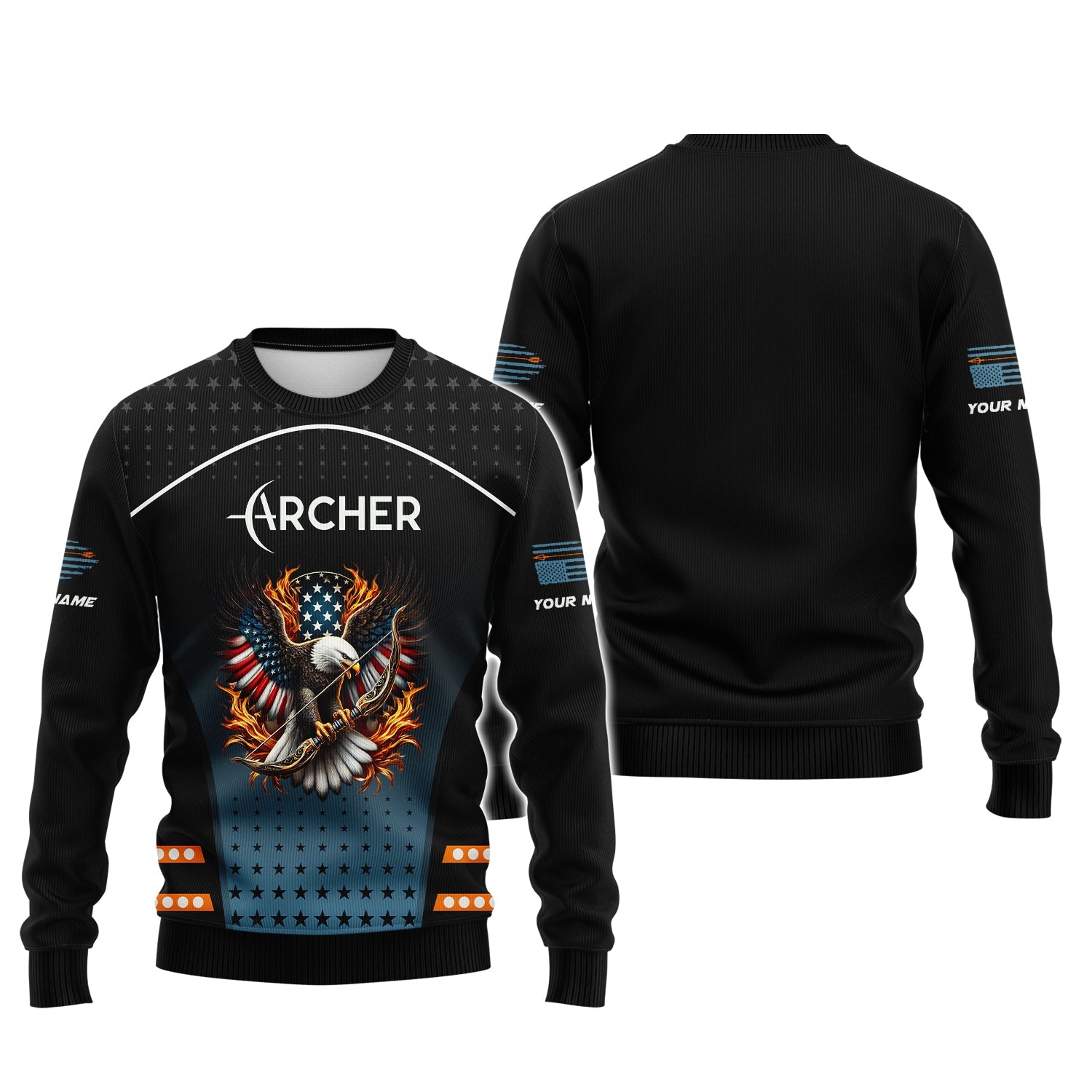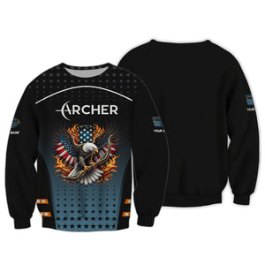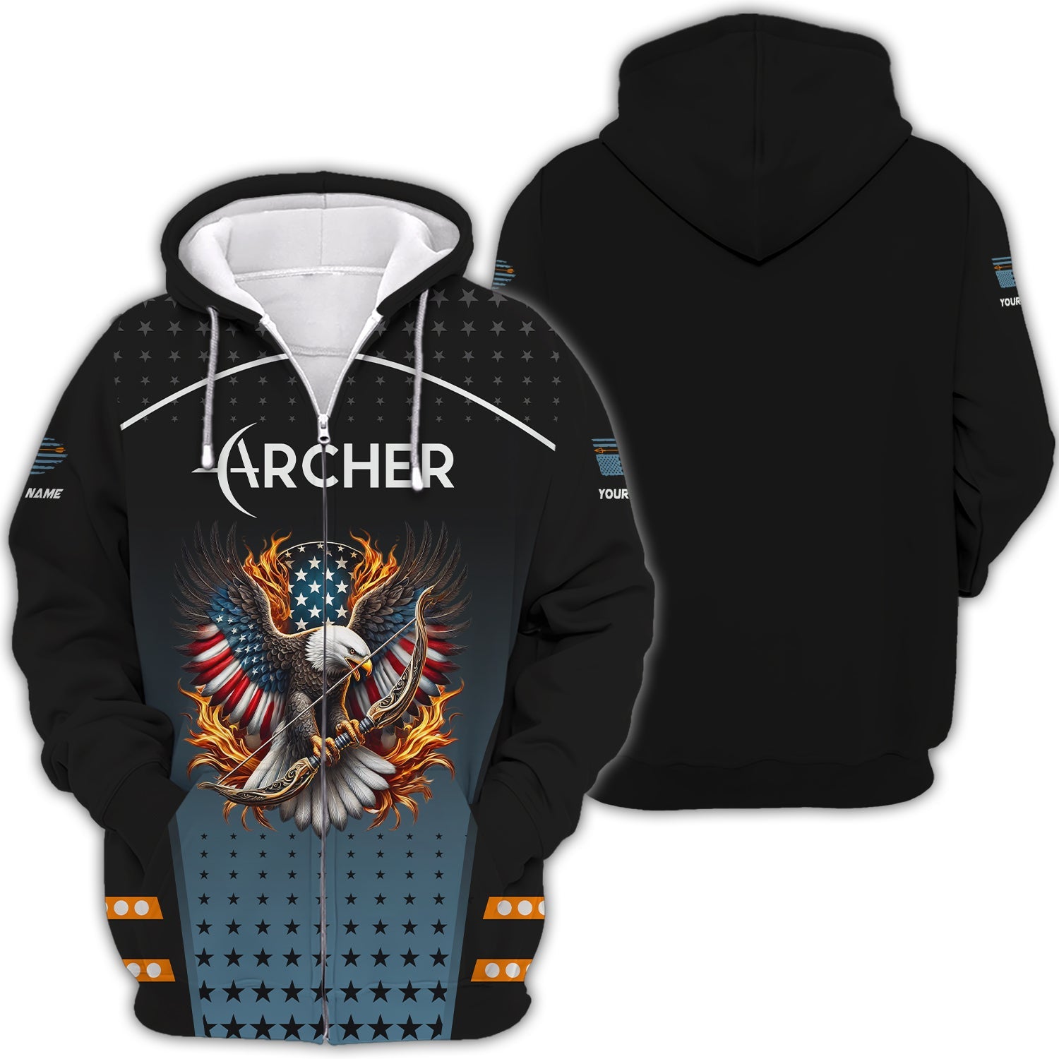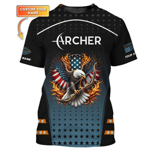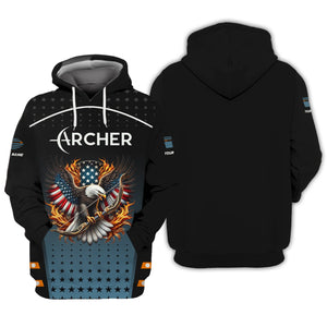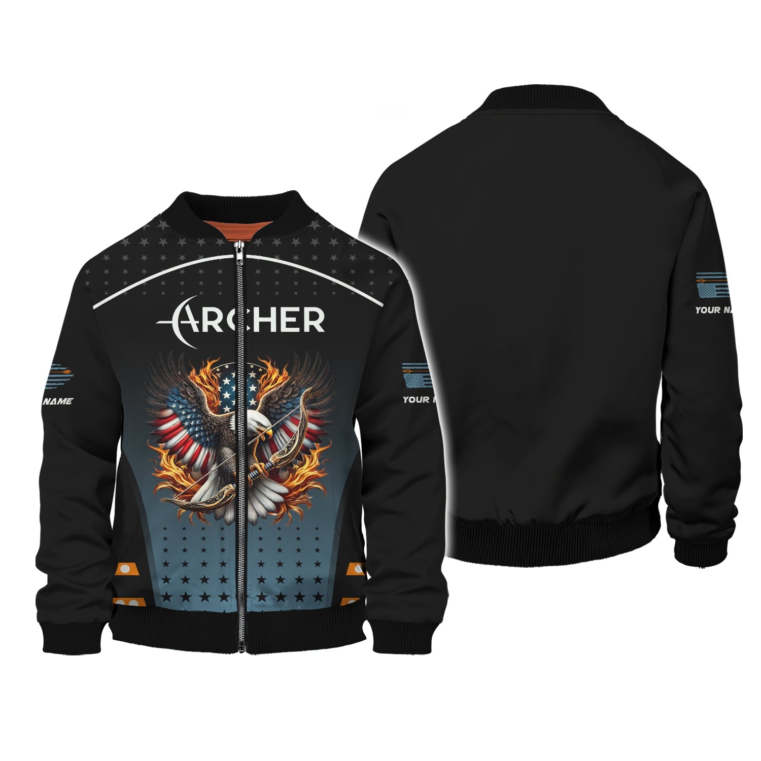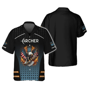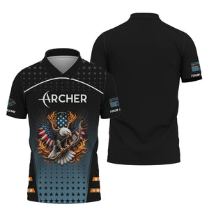 Custom Name Archer America Eagle Jersey, Patriotic Bow & Fire, Archery Polo Shirts