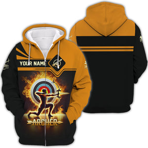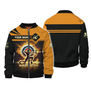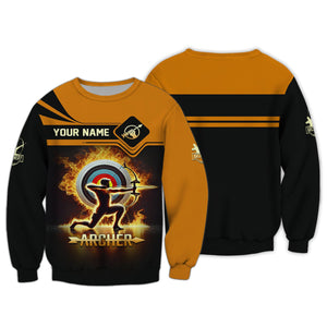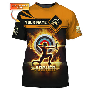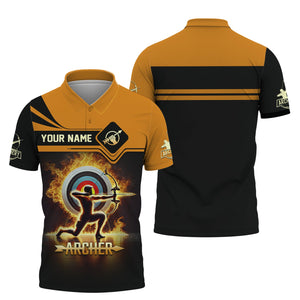 Archery Target Fire Custom Name T-Shirt 3D, Archery Polo Shirts, Lightweight Sportswear, Gift for Archers