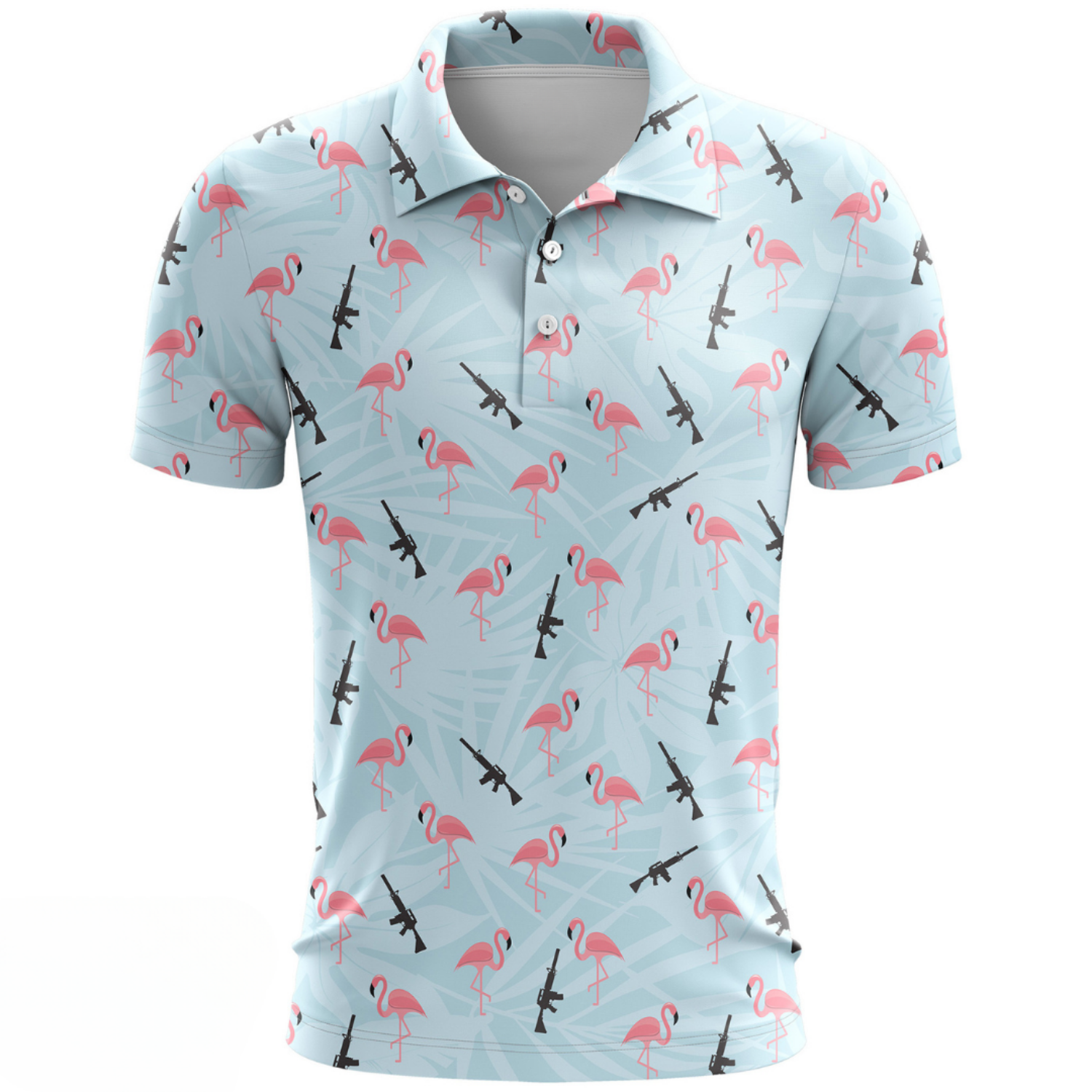 Armed Flamingos Golf Polo Shirt, 4th Of July Mens Golf Gift