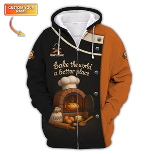 Bake The World A Better Place Shirt, Custom Name Baker Uniform, Gift for Baker