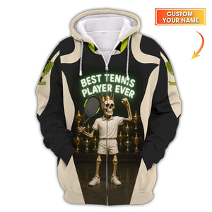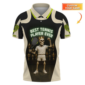 Best Tennis Player Ever Shirt – Custom Funny Tennis T-Shirt for Men – Skeleton Trophy King Sports Tee