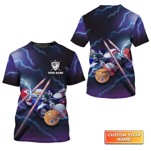 Billiard 8 Ball Thunder Lightning Personalized Name 3D Tshirt Gift Billiard Players