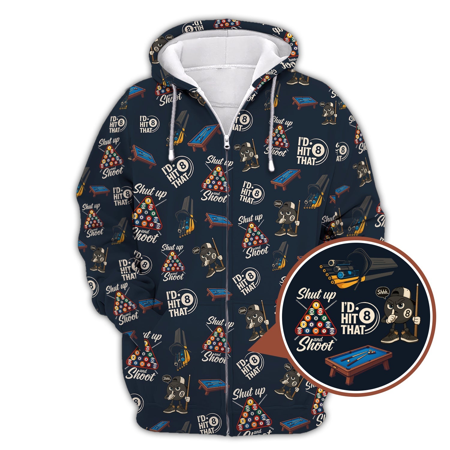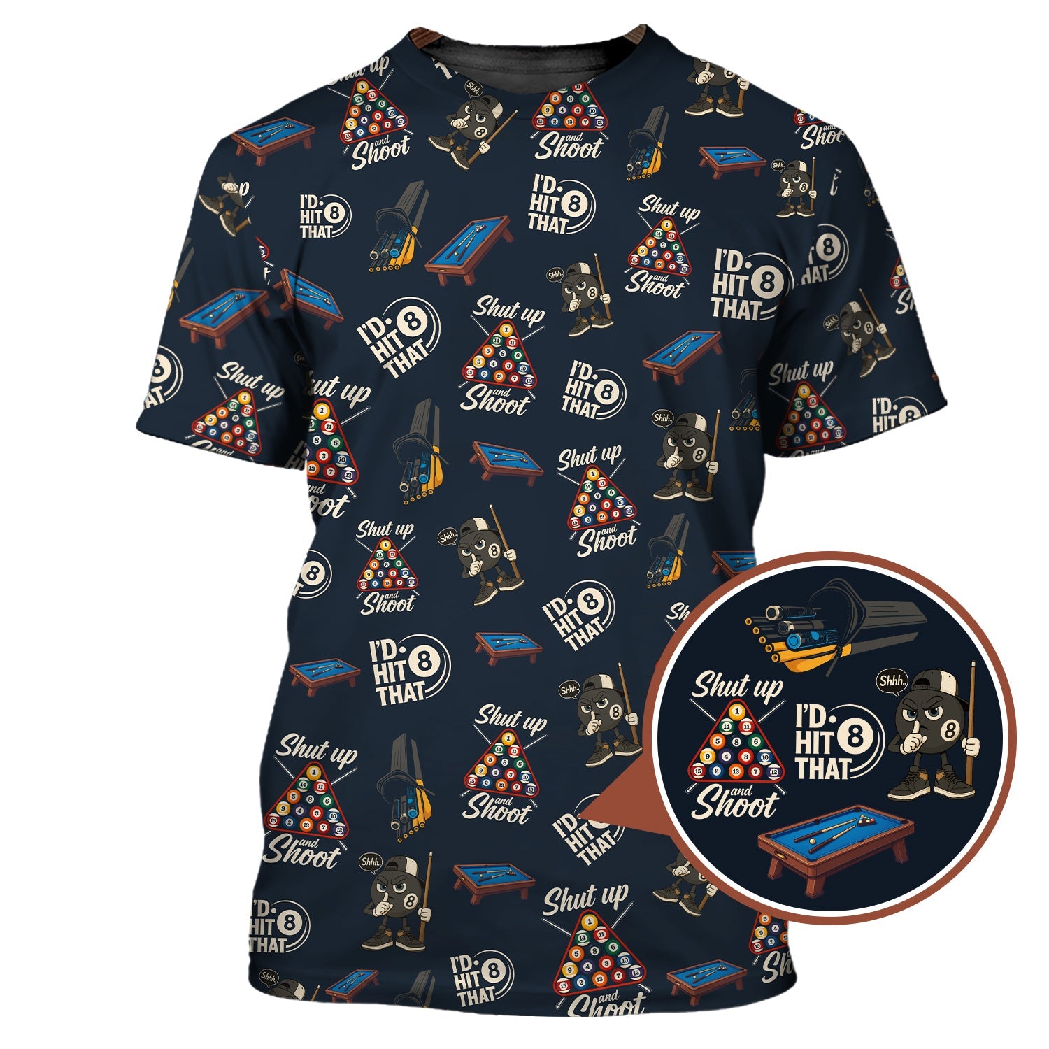 Billiard Jersey For Men, Funny Pool Player Shirt, Shut Up And Shoot Pattern Billiard Shirt
