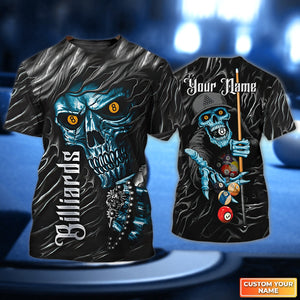 Billiard Skull Blue Pool 8 Ball Personalized Name 3D Tshirt Gift Billiard Players