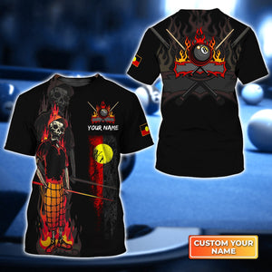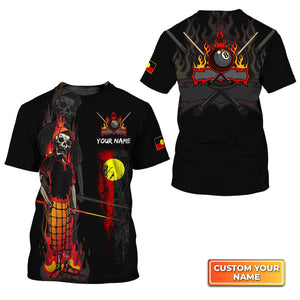 Bones 8 Ball Aboriginal Flag Billiards Personalized Name 3D Tshirt Gift For Billiard Players