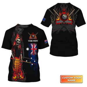 Bones 8 Ball Australia Flag Billiards Personalized Name 3D Tshirt Gift For Billiard Players