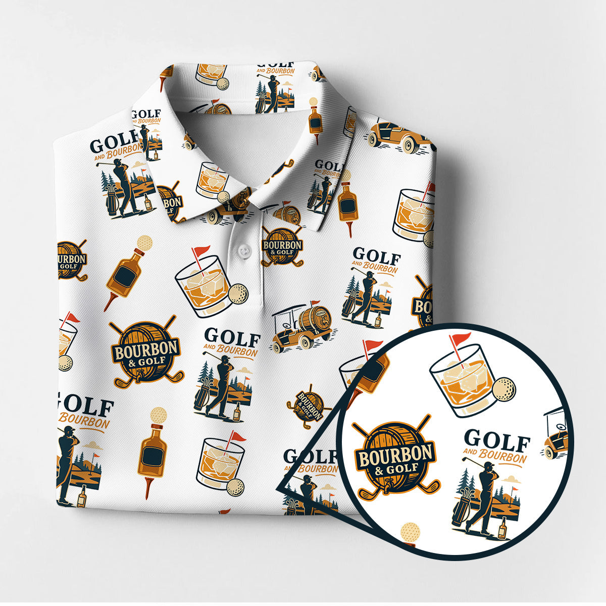 Bourbon Whiskey & Golf Polos, Funny Pattern Golf Shirt, Golf Gift For Men's