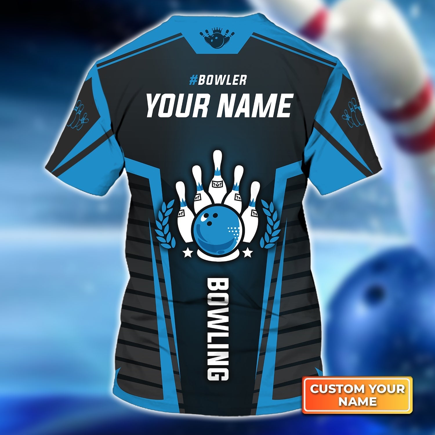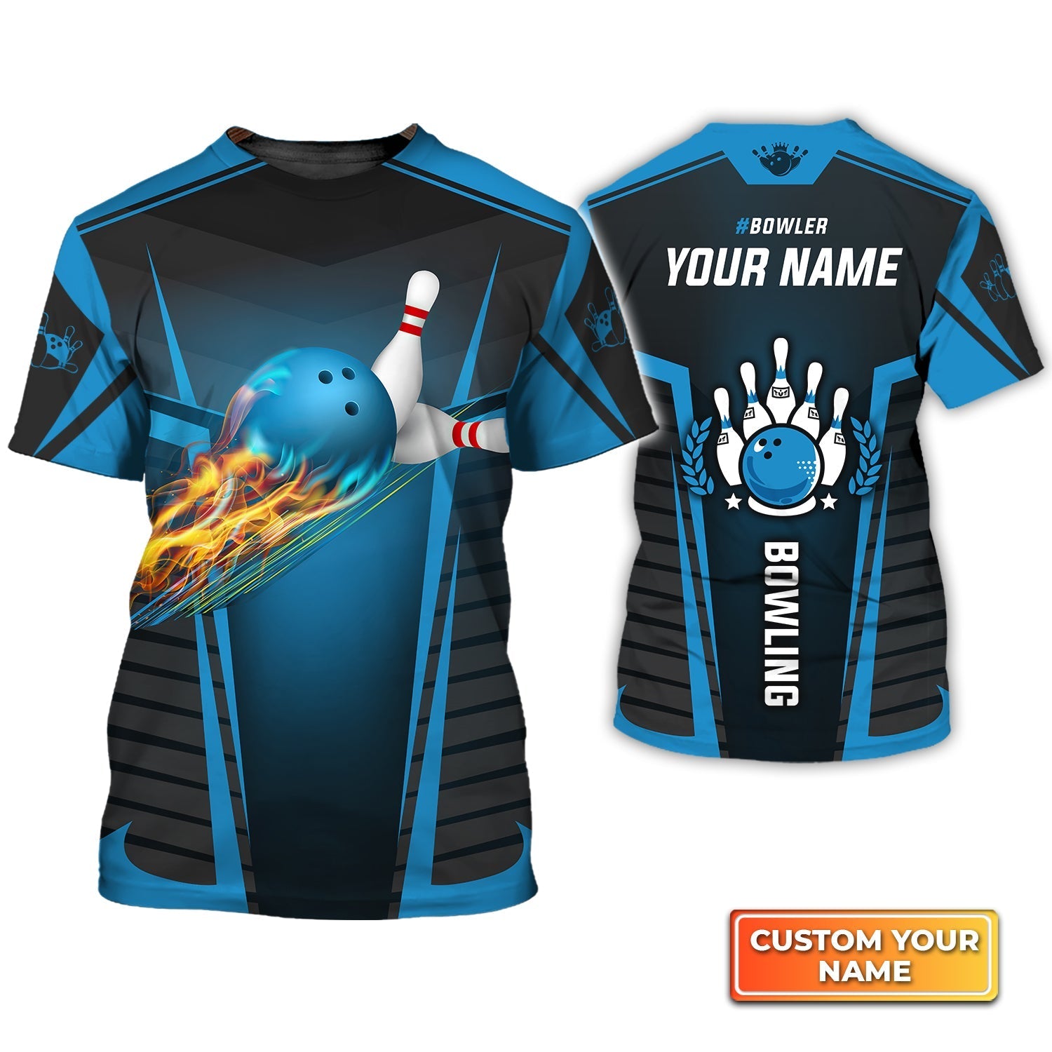 BowlerThe Blue Bowling Ball in Flames Breaks White Skittles Personalized Name 3D Tshirt