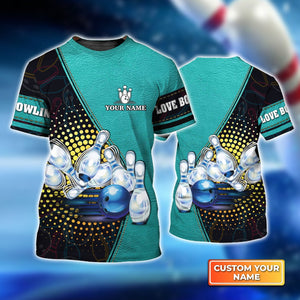 Bowling Game Sign Icon with Pin Skittle Personalized Name 3D Tshirt