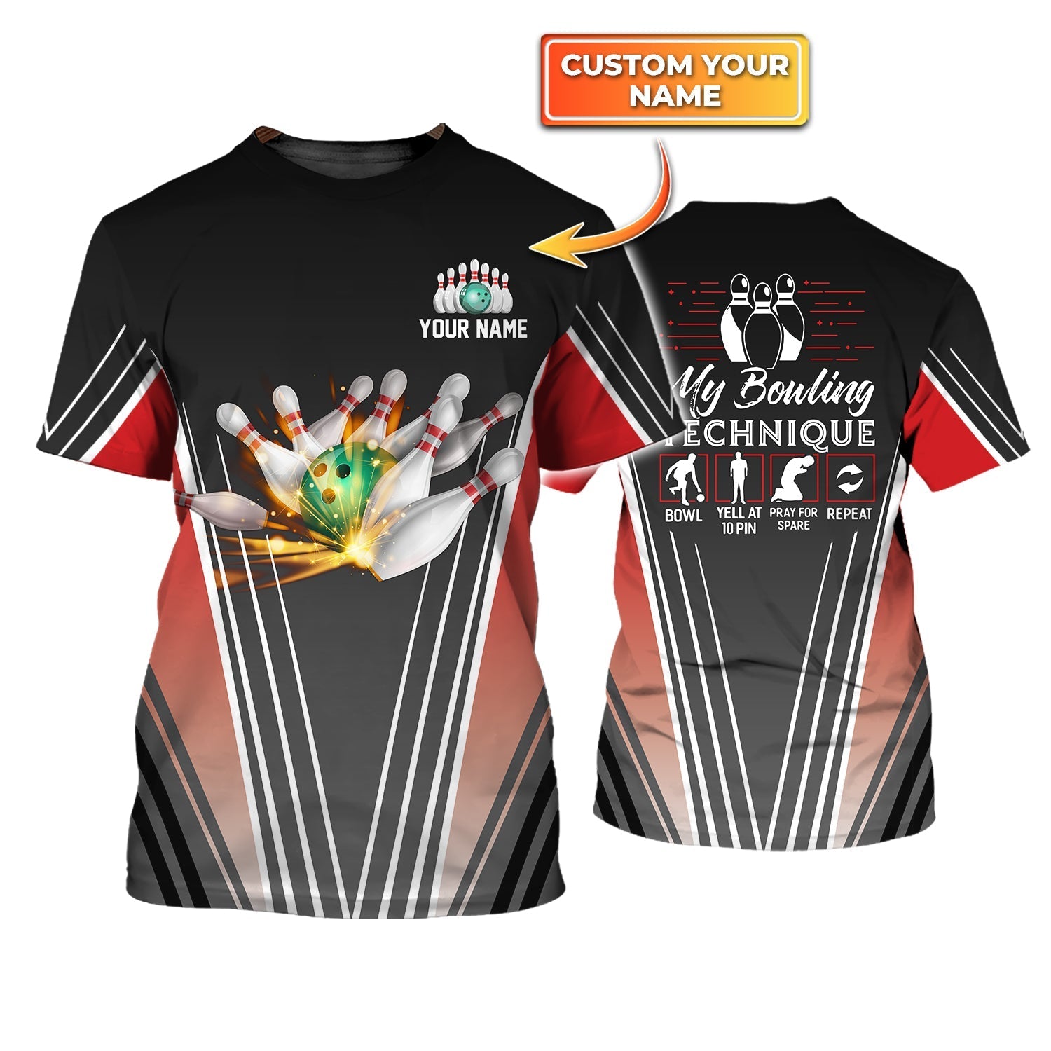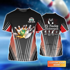 Bowling In Red My Bowling Technique Personalized Name 3D Tshirt