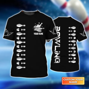 Bowling Strike Black And White Personalized Name 3D Tshirt