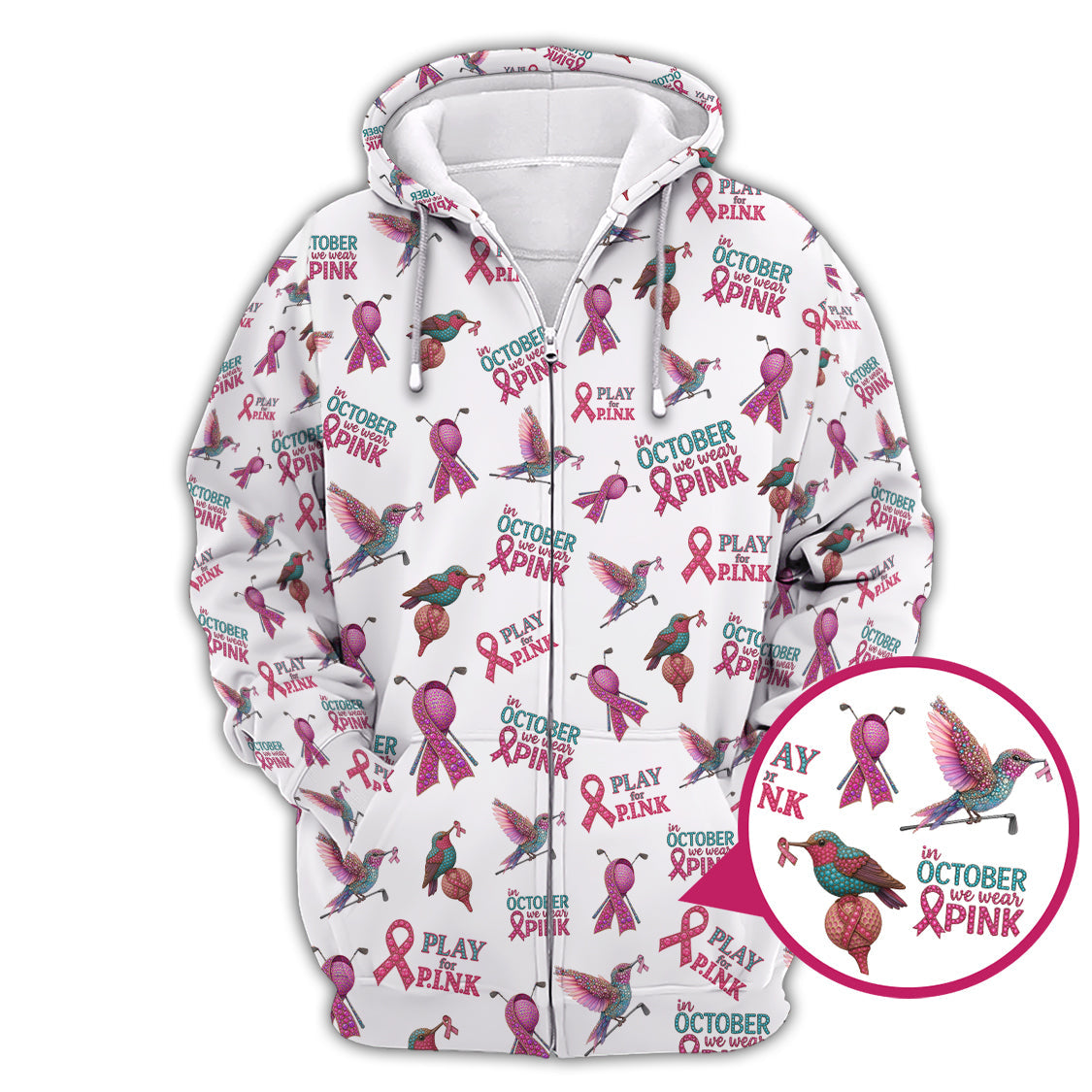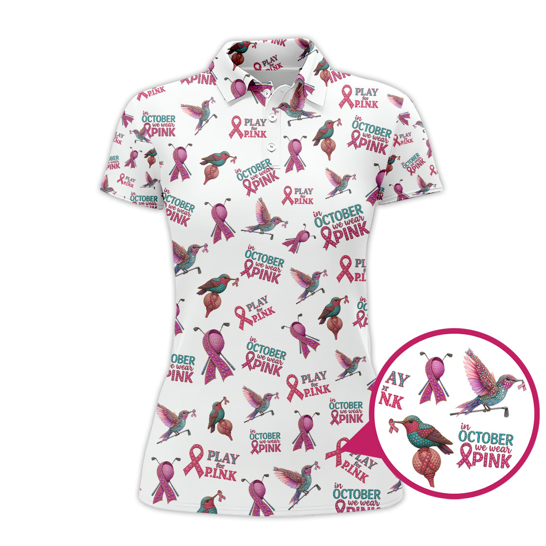 Breast Cancer Golf Shirt, Pattern Golf Shirt, In October We Wear Pink Polos, Crazy Golf Shirt For Golfer