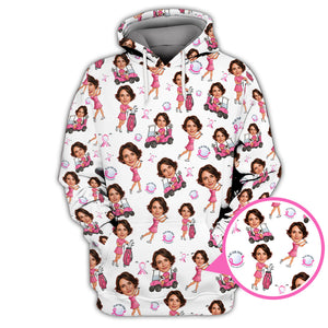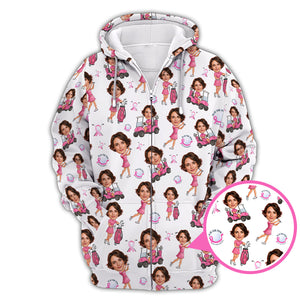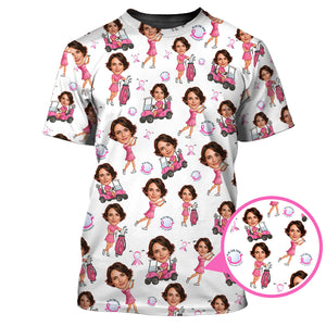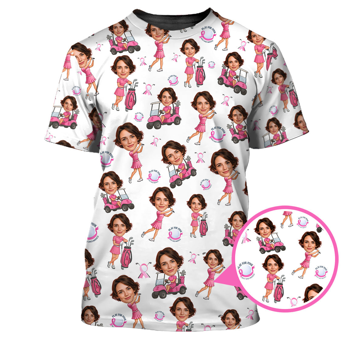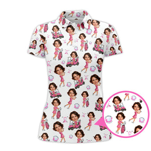 Breast Cancer Golf Shirt With Custom Face, Ladies Golf Shirts For Golfer, Funny Womens Pattern Golf Shirt