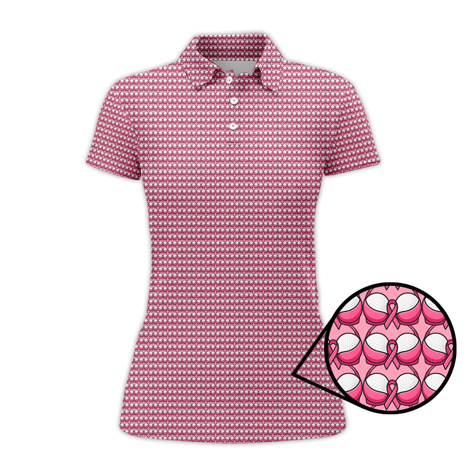 Breast Cancer Pattern Golf Shirt, Pink Golf Shirt, Golf Gift For Golfers, Breast Cancer Golf Shirt