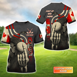 Canada Flag Skull Golf Shut Up And Swing, Personalized Name 3D Tshirt Gift For Golfer