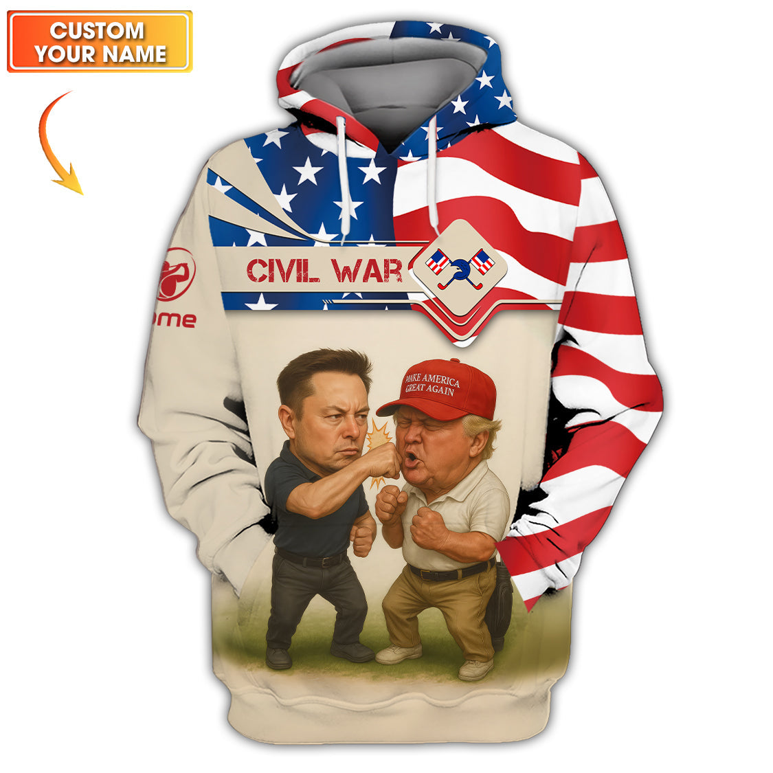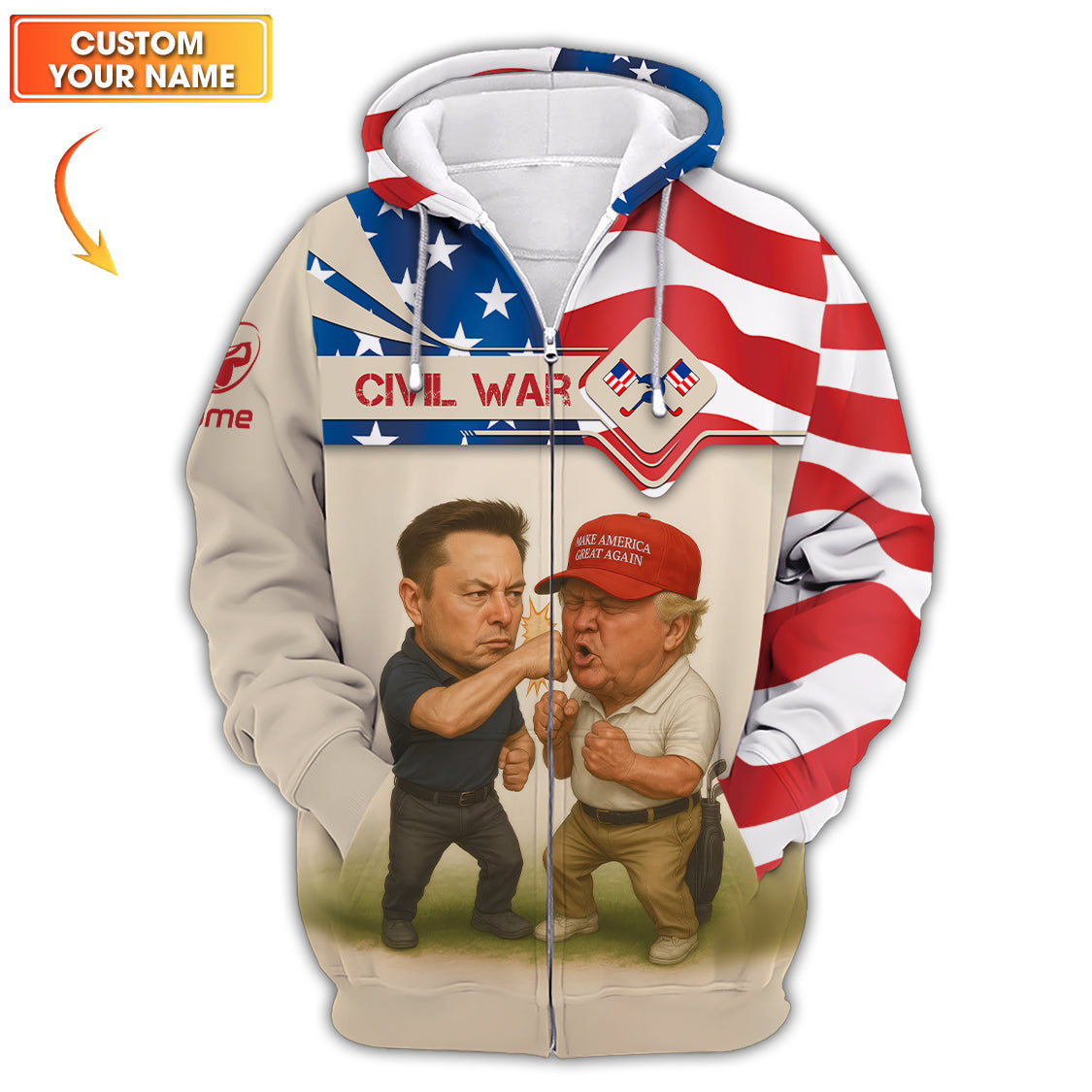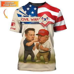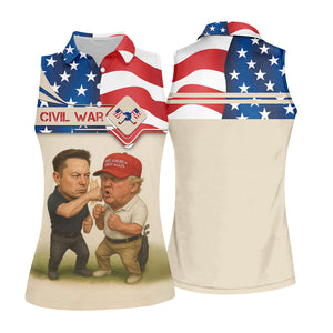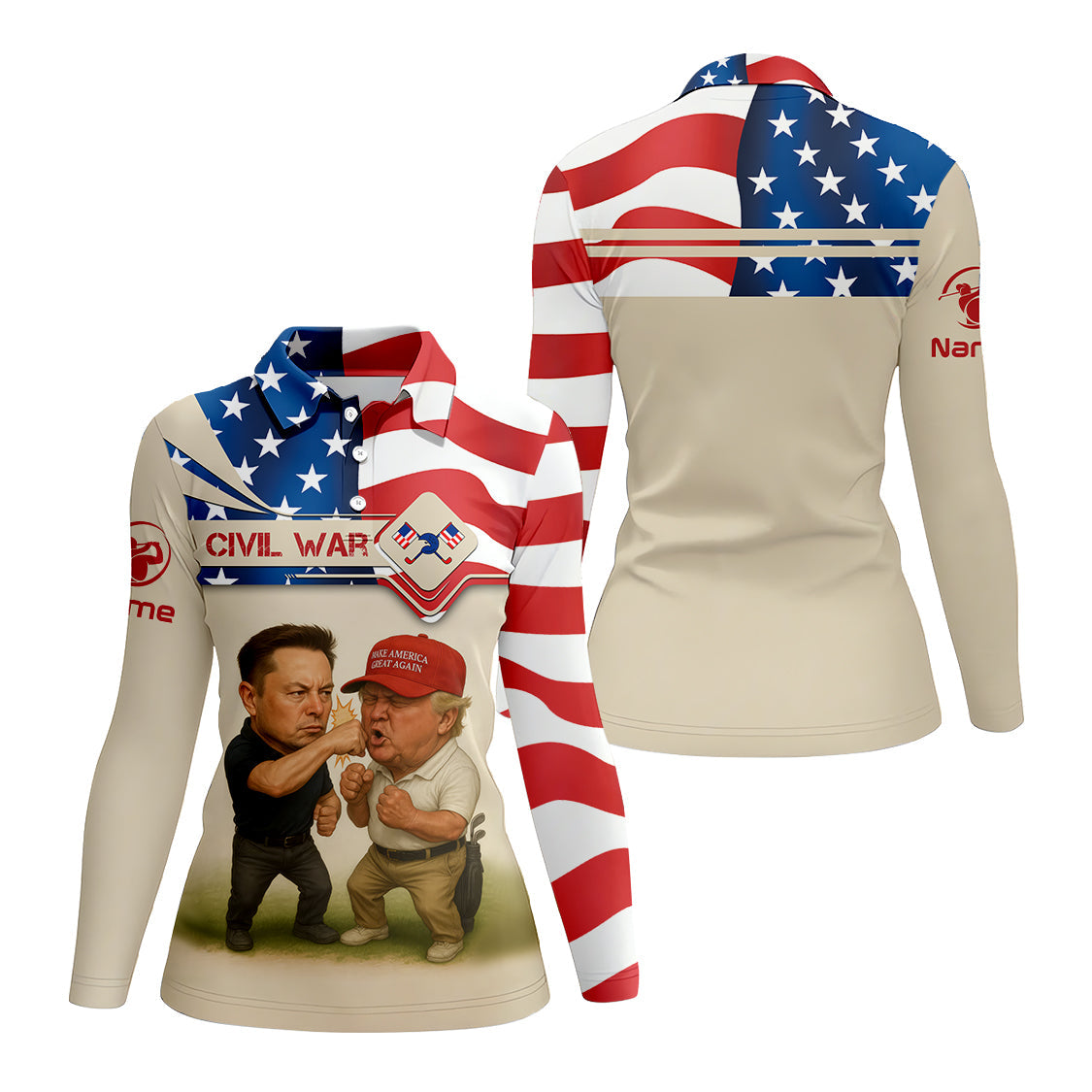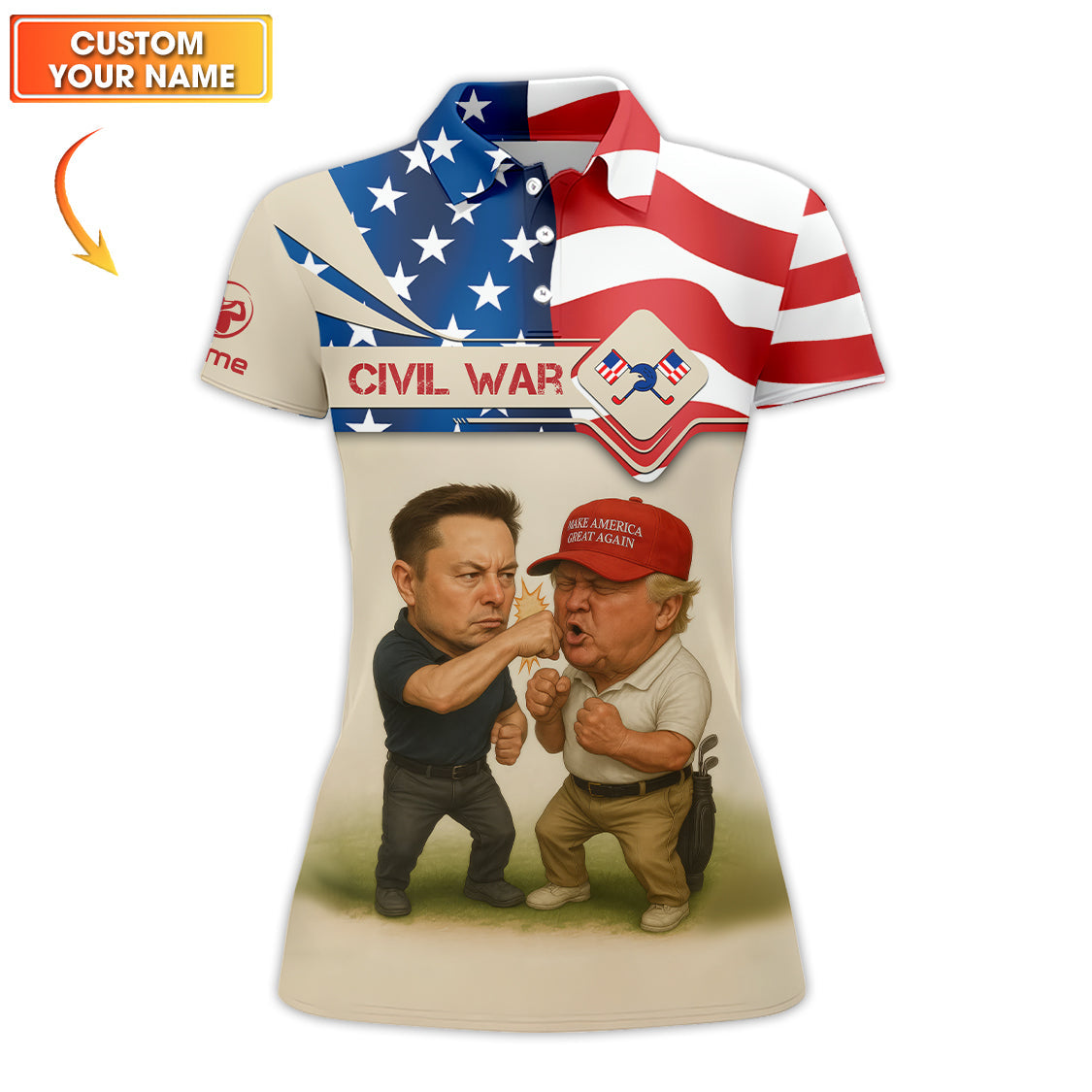 Civil War Golf Polo Shirt – Custom Golf Polo Featuring Political Cartoon – Funny Trump and Musk Shirt for Events & Gifts