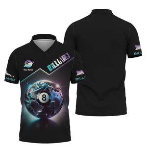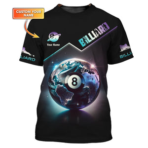 Custom 8 Billiards Earth Color Effect Galaxy T-Shirt, Gift For Billiards Players