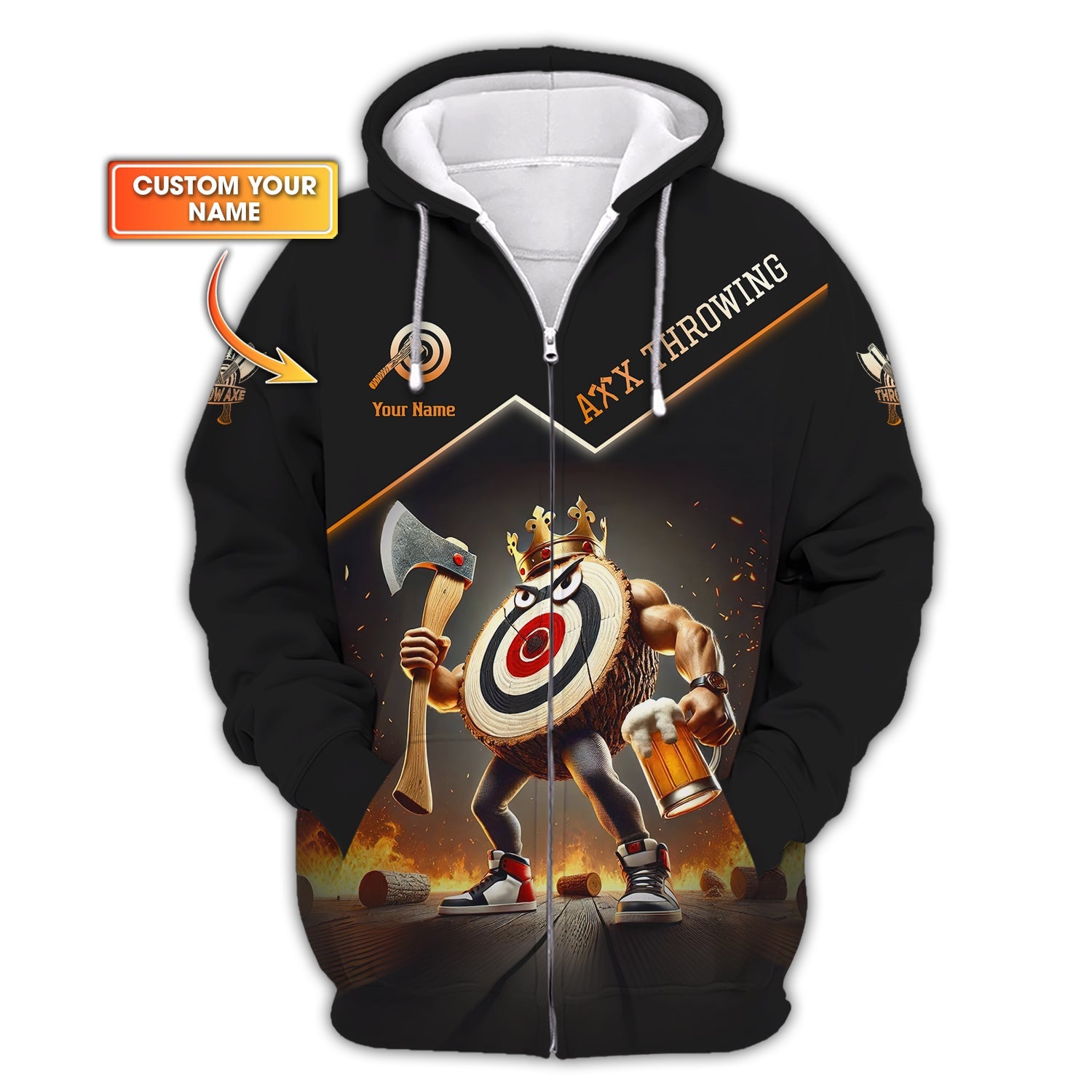 Custom Axe Throwing AOP T-Shirts, Polo Shirts, Sweatshirts & Hoodies β Personalized with Your Name!