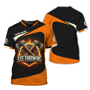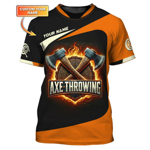 Custom Axe Throwing T-Shirt – Bold Fire & Crossed Axes, Gift for Axe Throwing Players