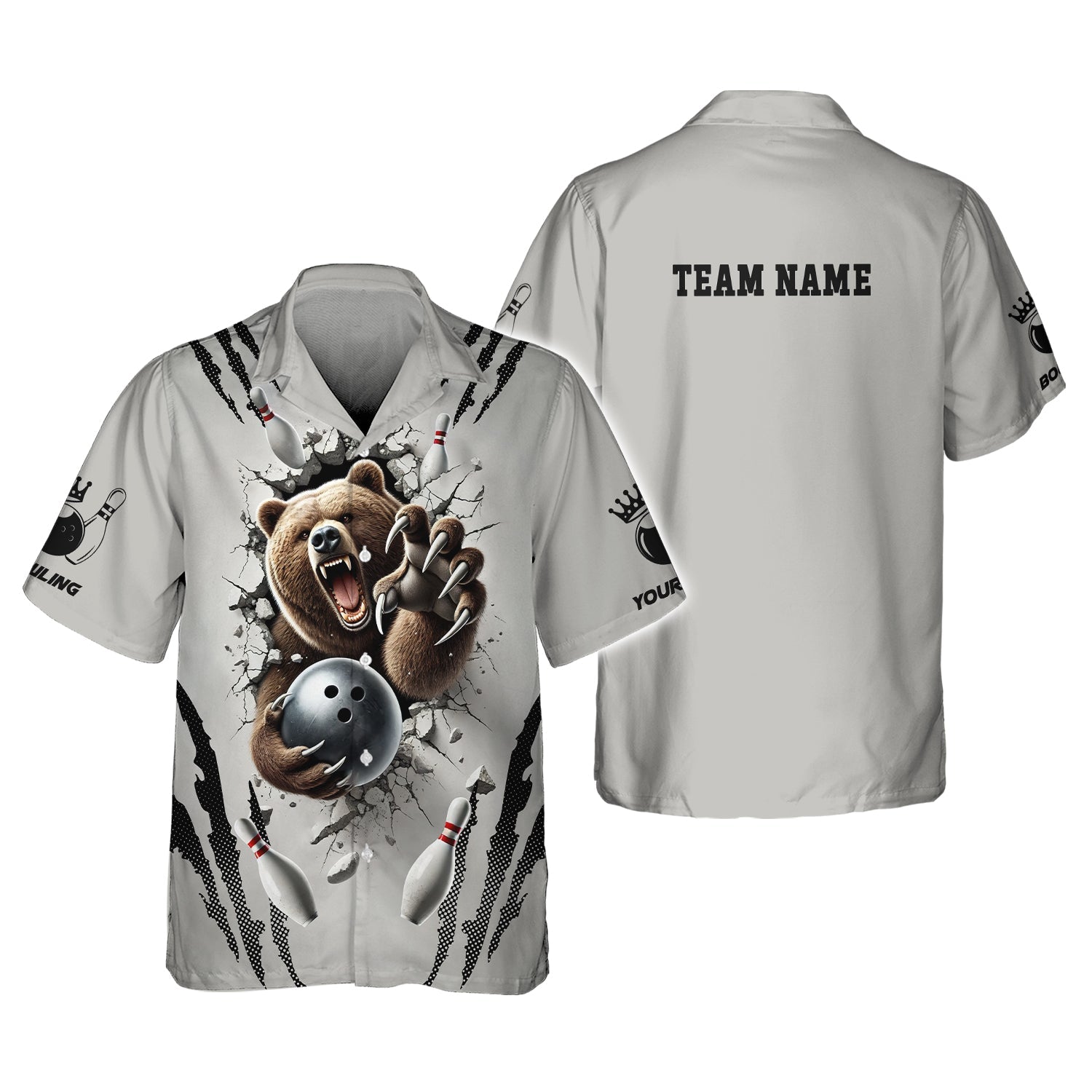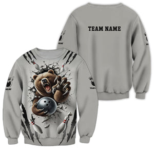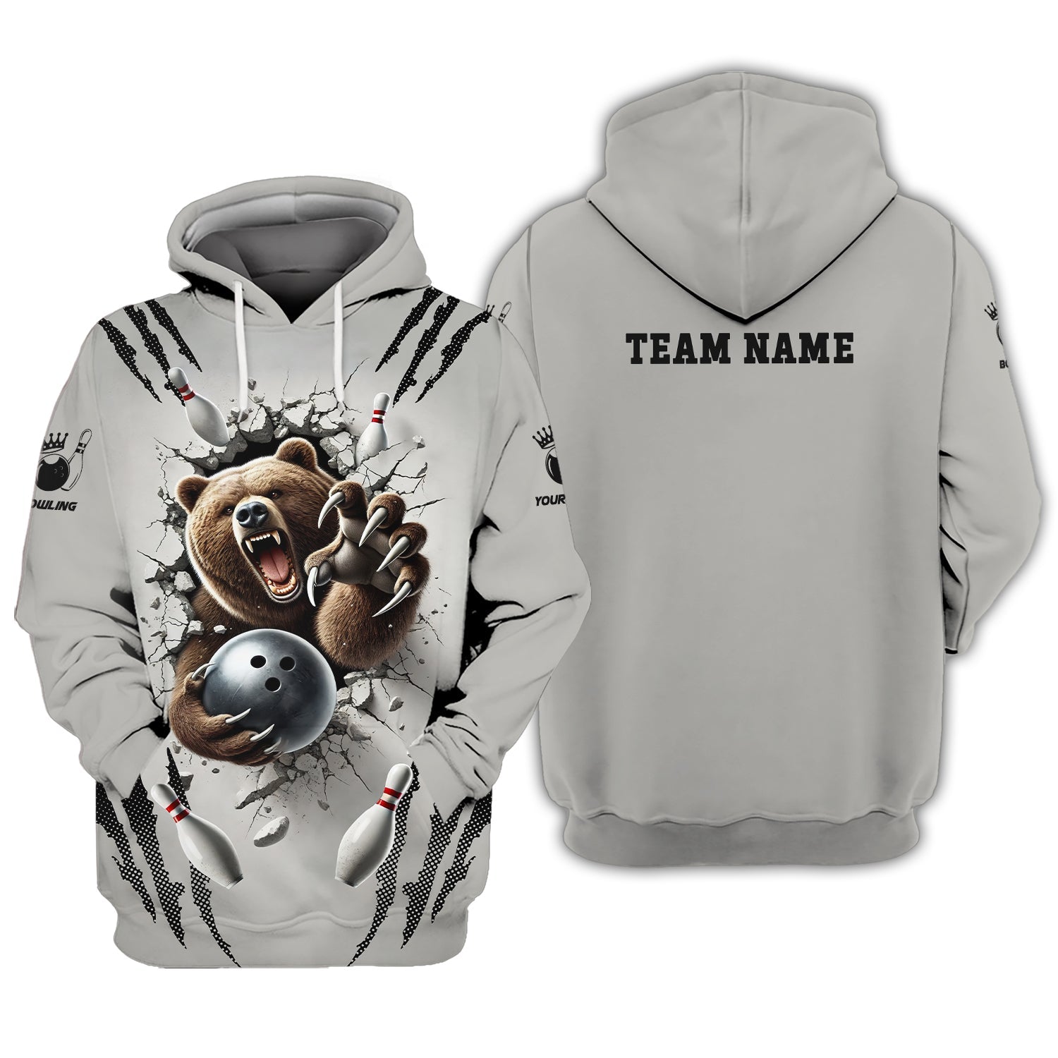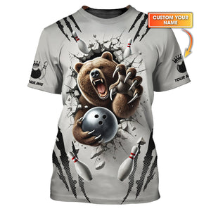 Custom Bear Bursting with Cracked Effect T Shirt, 3D Bowling Pin & Ball Design, Bowling Presents