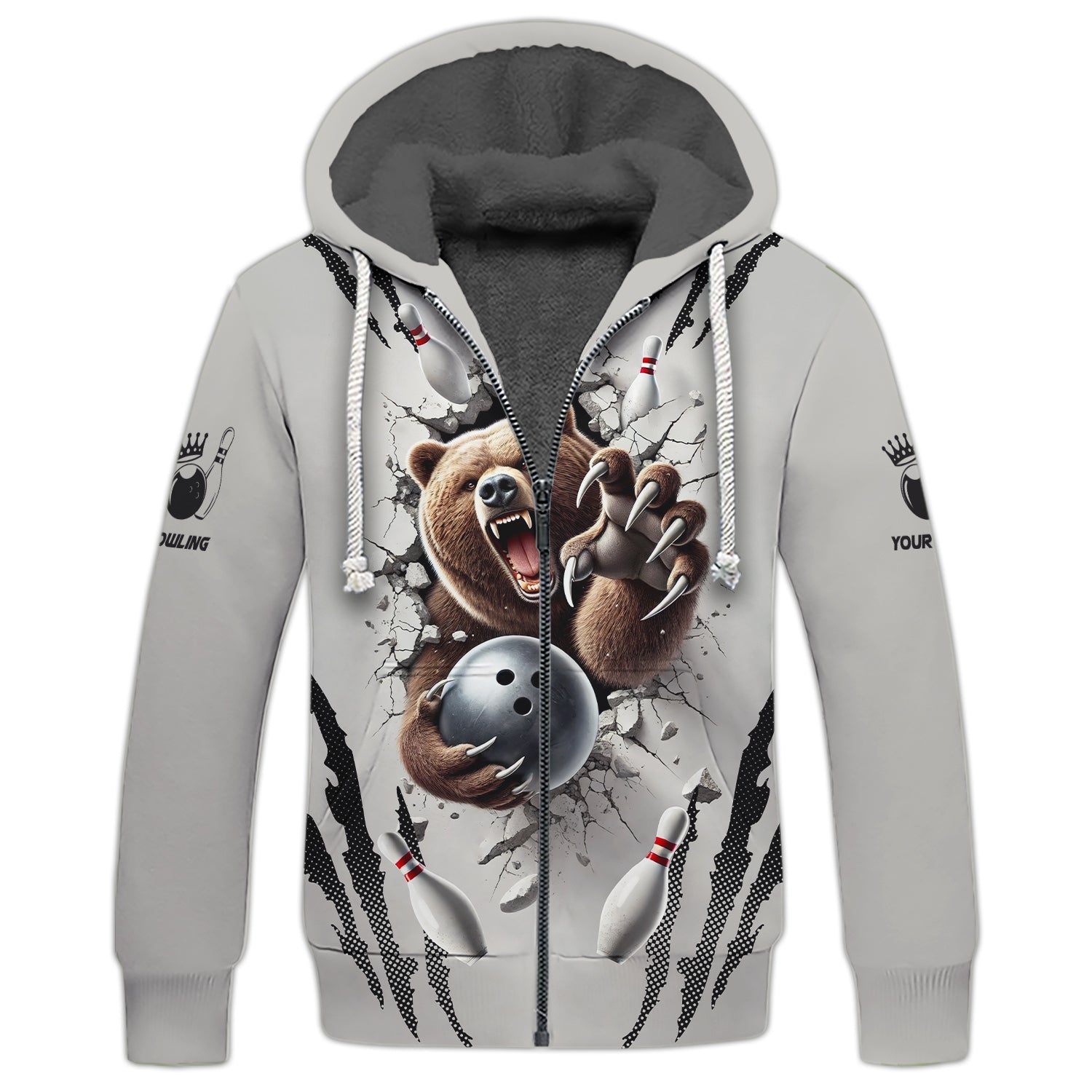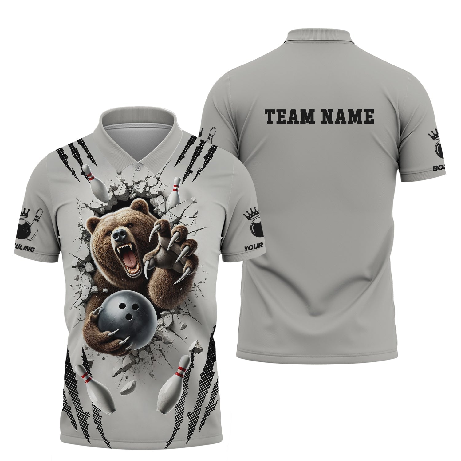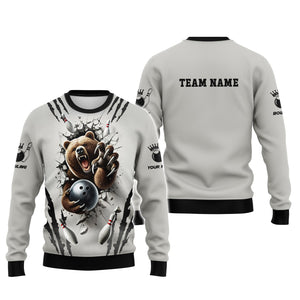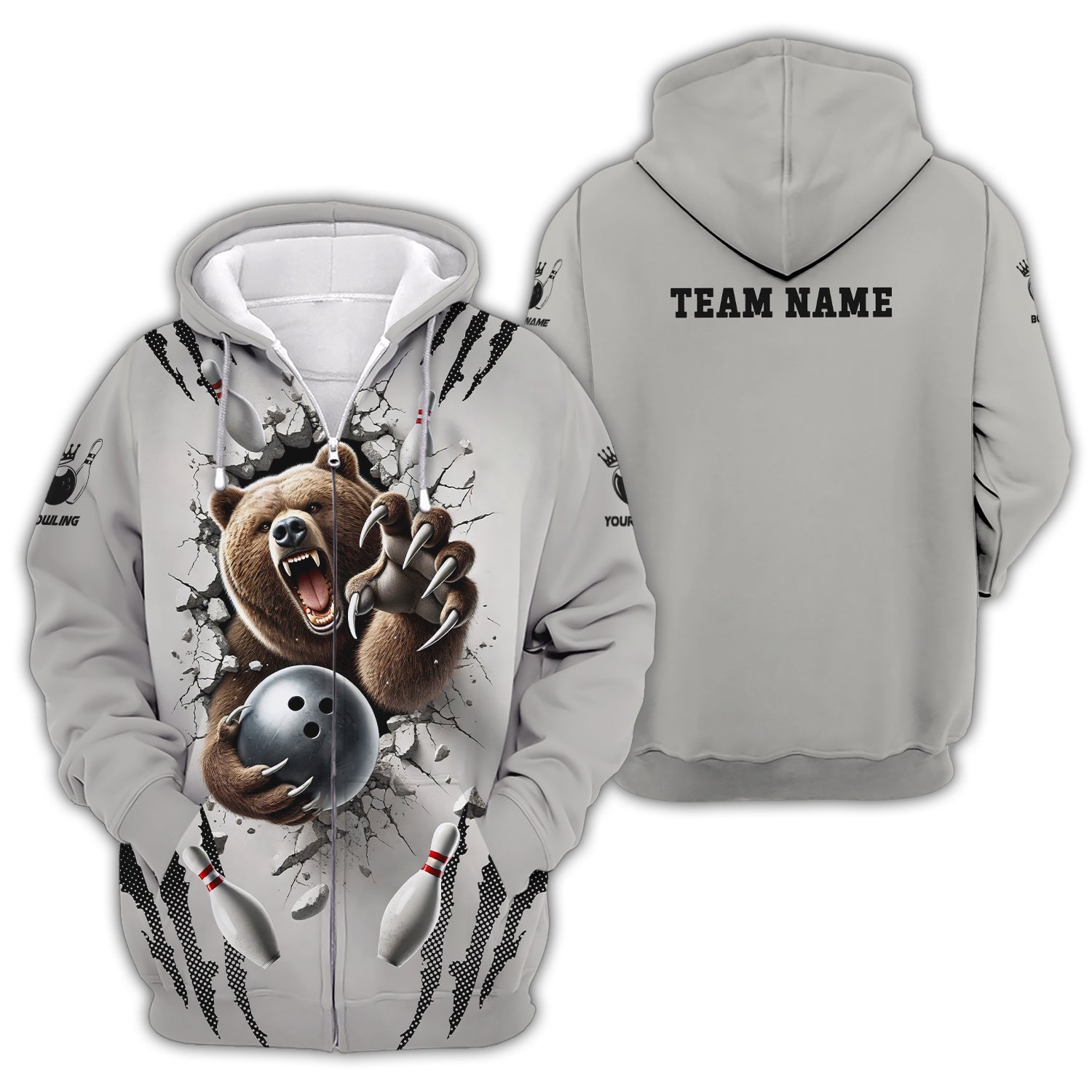 Custom Bear Bursting with Cracked Effect T Shirt, 3D Bowling Pin & Ball Design, Bowling Presents