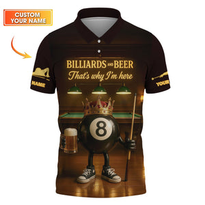 Billiards and Beer That Why I'm Here T Shirts, 8 Ball Pool Beer Crown Pool Tee Team