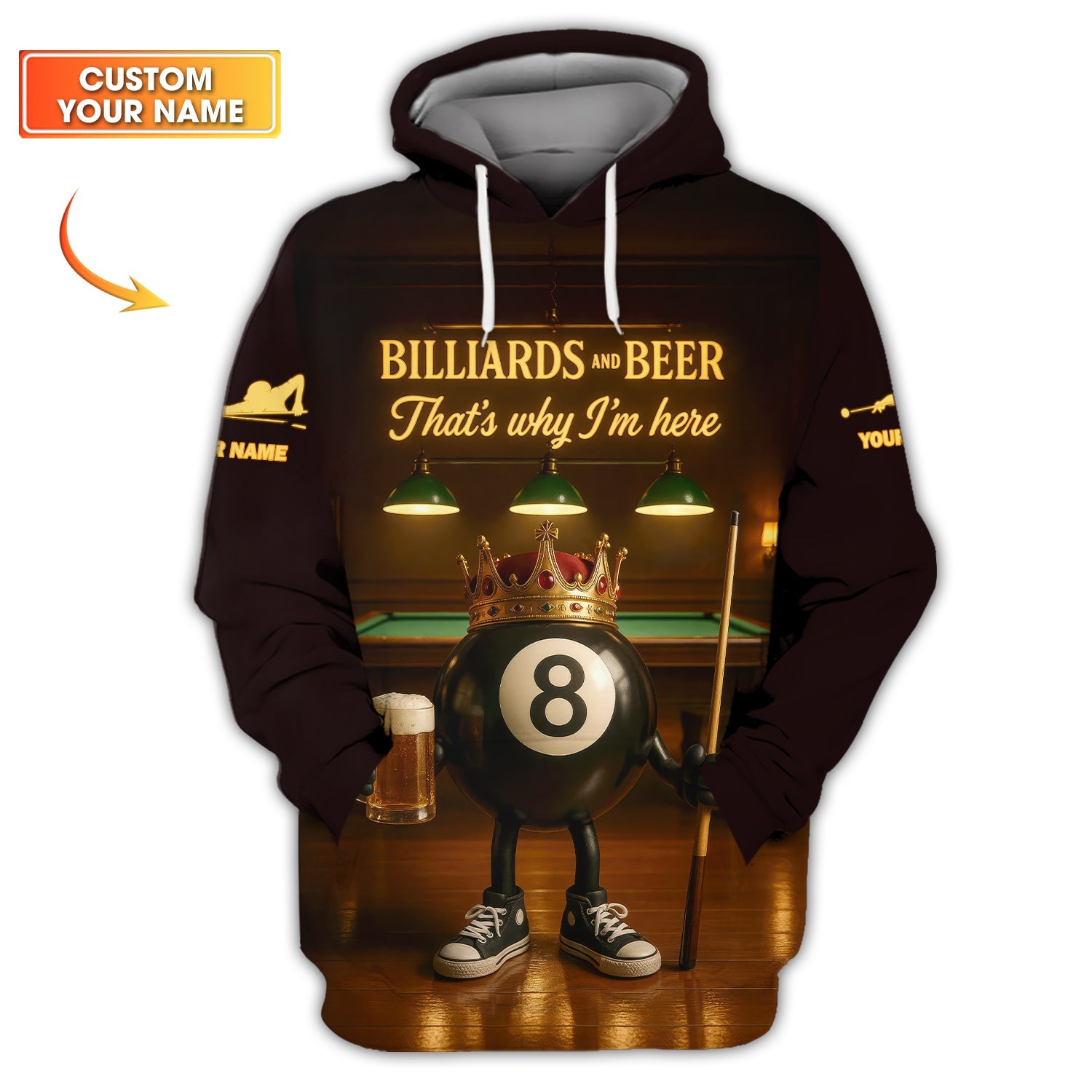 Custom Billiards AOP T-Shirts, Quater Zip Jersey, Polo Shirts, Sweatshirts & Hoodies – Personalized with Your Name!