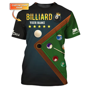 Custom Billiards Shirt – Black Green Pool Table Design with 8-Ball Crown – Personalized Tee for Billiard Players & Fans