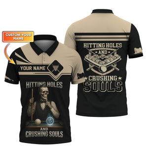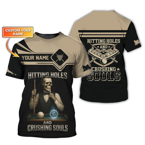 Custom Billiards Shirt, Skeleton Pool Players Tee, Funny Hitting Holes And Crushing Souls, Gift For Billiards Player