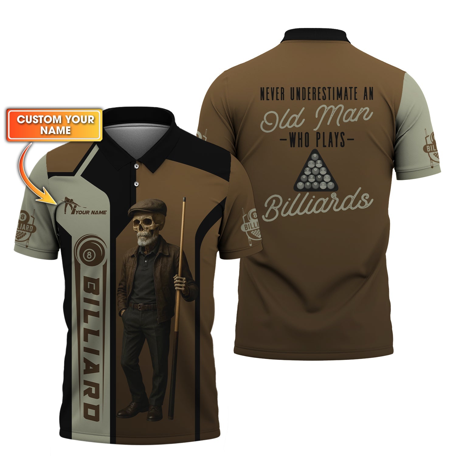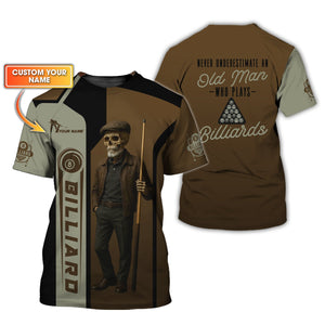 Custom Billiards Shirt, Skeleton Pool T Shirt, Never Underestimate Old Man, Gift For Billiards Player