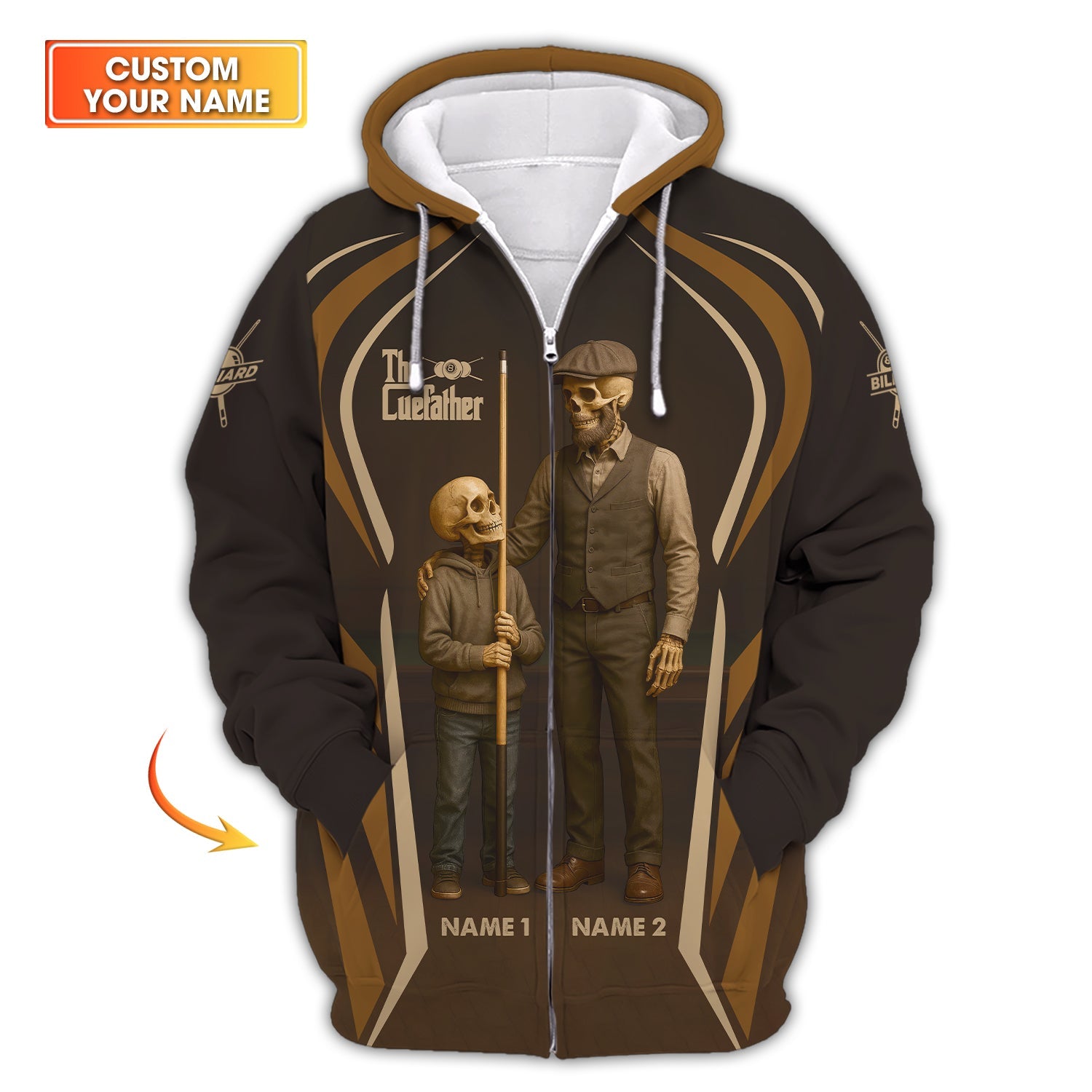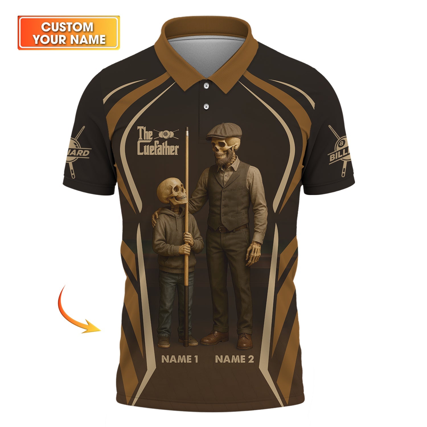 Billiards T Shirt The CueFather Skeleton Pool Player Tee Brown Father Son Gift for Dad