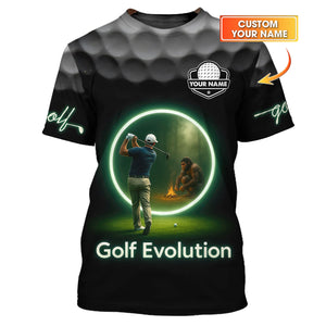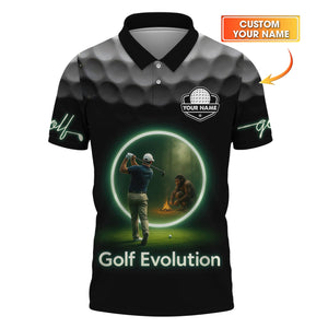 Black Evolution Golf Polo Shirt, Glow - Inspired Funny Golfer Tee, Golf Gifts for Men