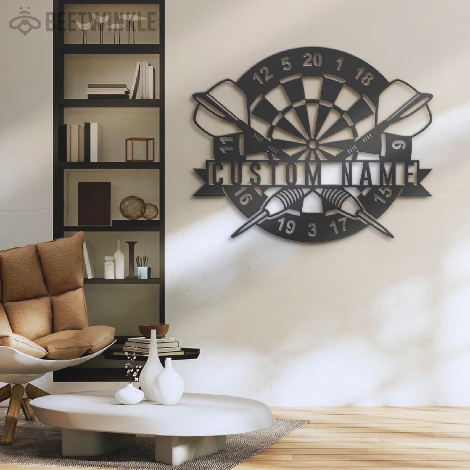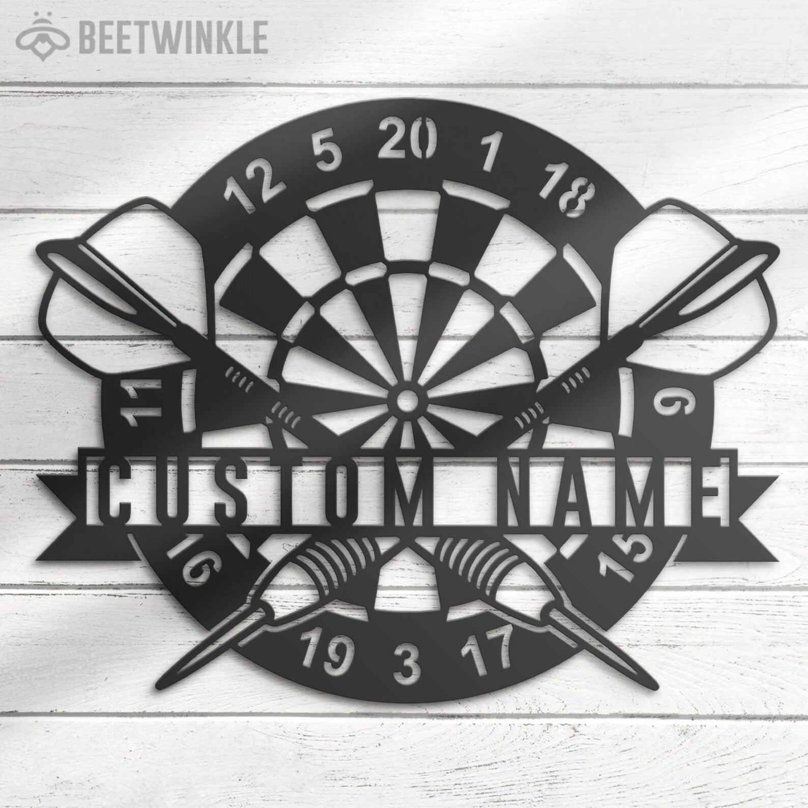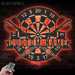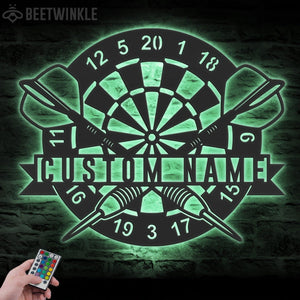 Custom Dartboard Metal Sign – Personalized LED Wall Light for Dart Lovers – Game Room Decor