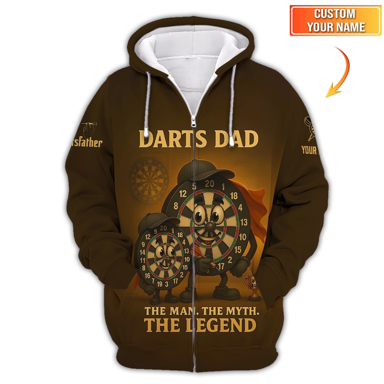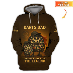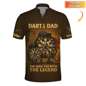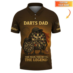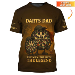Custom Darts Dad Shirt | Brown Funny Dartboard Father Gift Tee For Legend