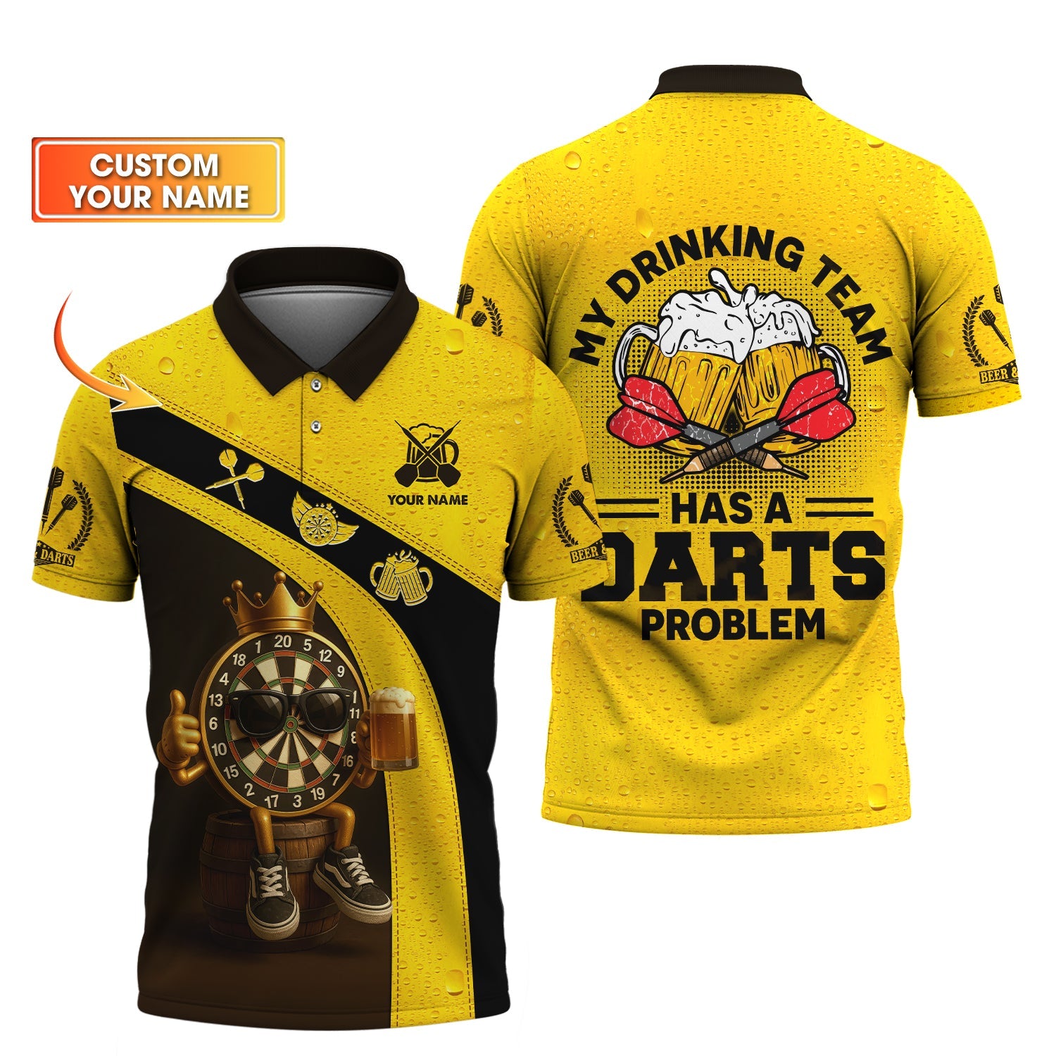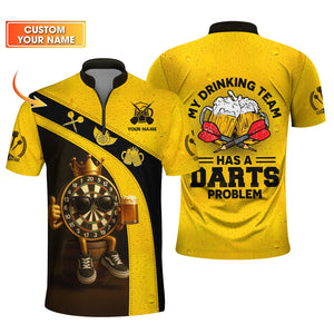 Custom Darts Shirt | Yellow Beer & Dartboard Tee for Funny Drinking Team Gift