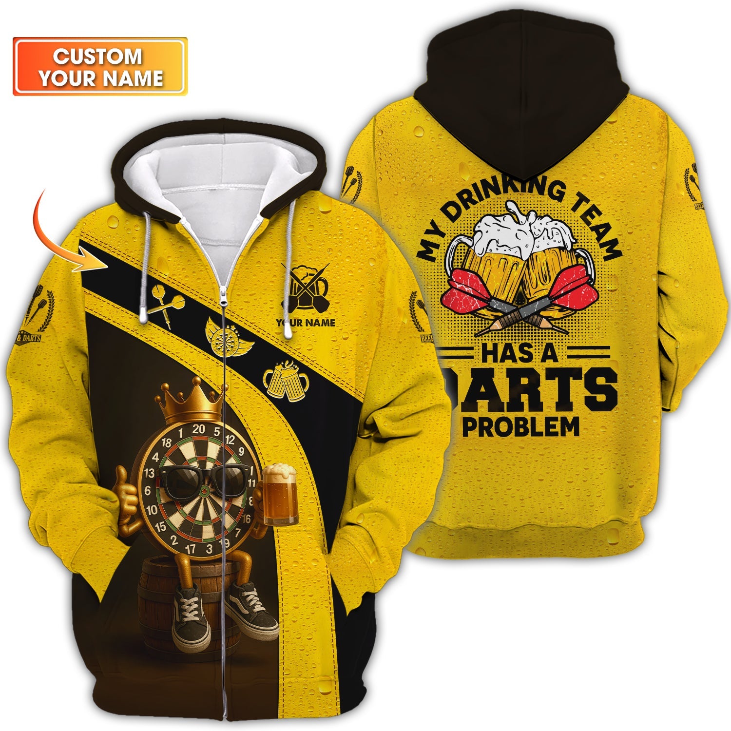 🎯 Custom Darts AOP T-Shirts, Polo Shirts, Sweatshirts & Hoodies – Personalized with Your Name & Team!
