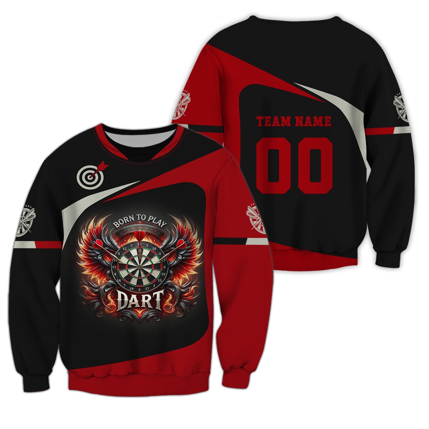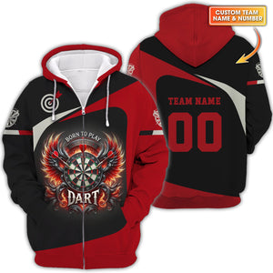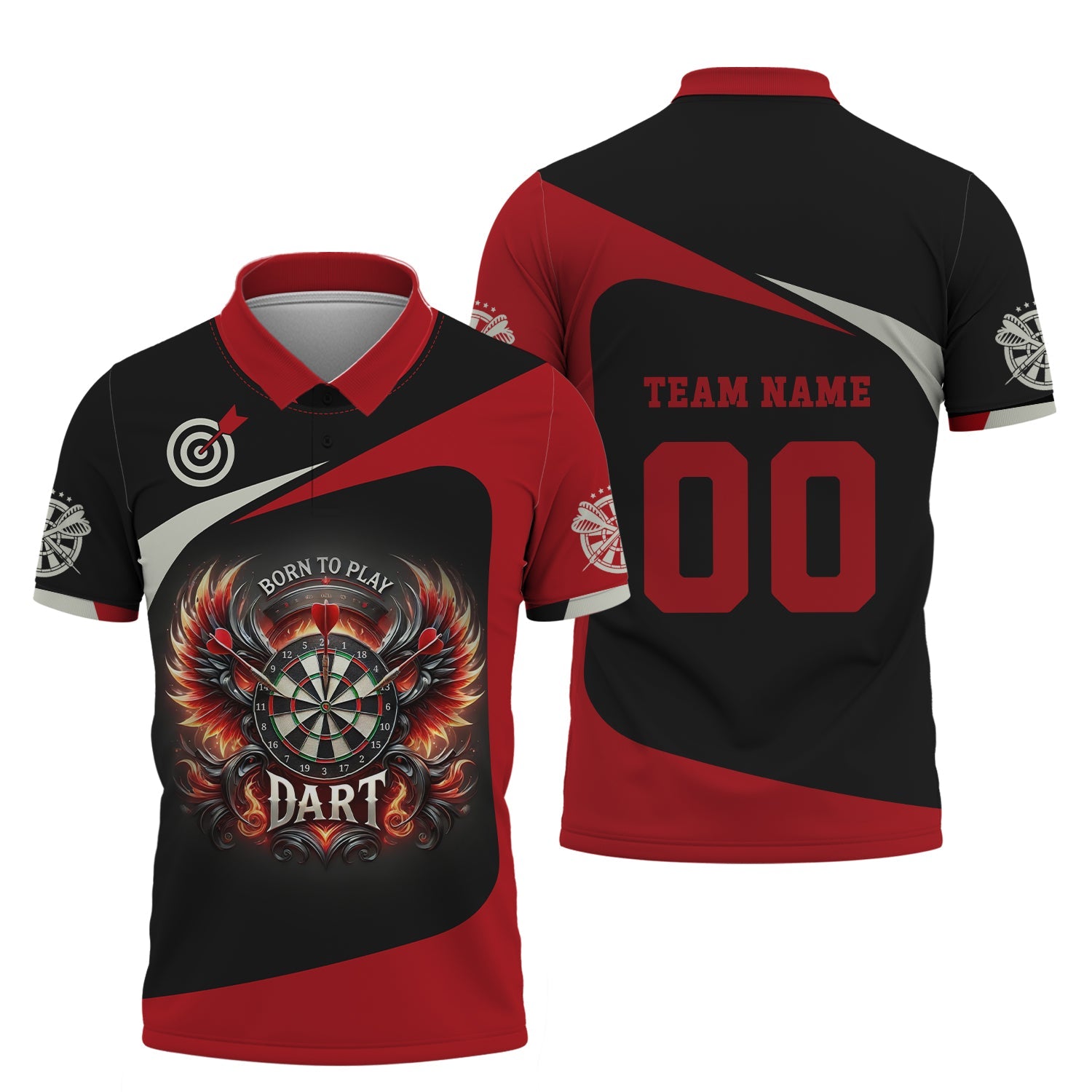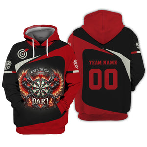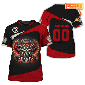 Custom Darts Team Name & Number Personalized 3D Fire Wing Polo Shirt, T-shirt For Darts Player, Darts Shirts, Gift For Darts Lovers