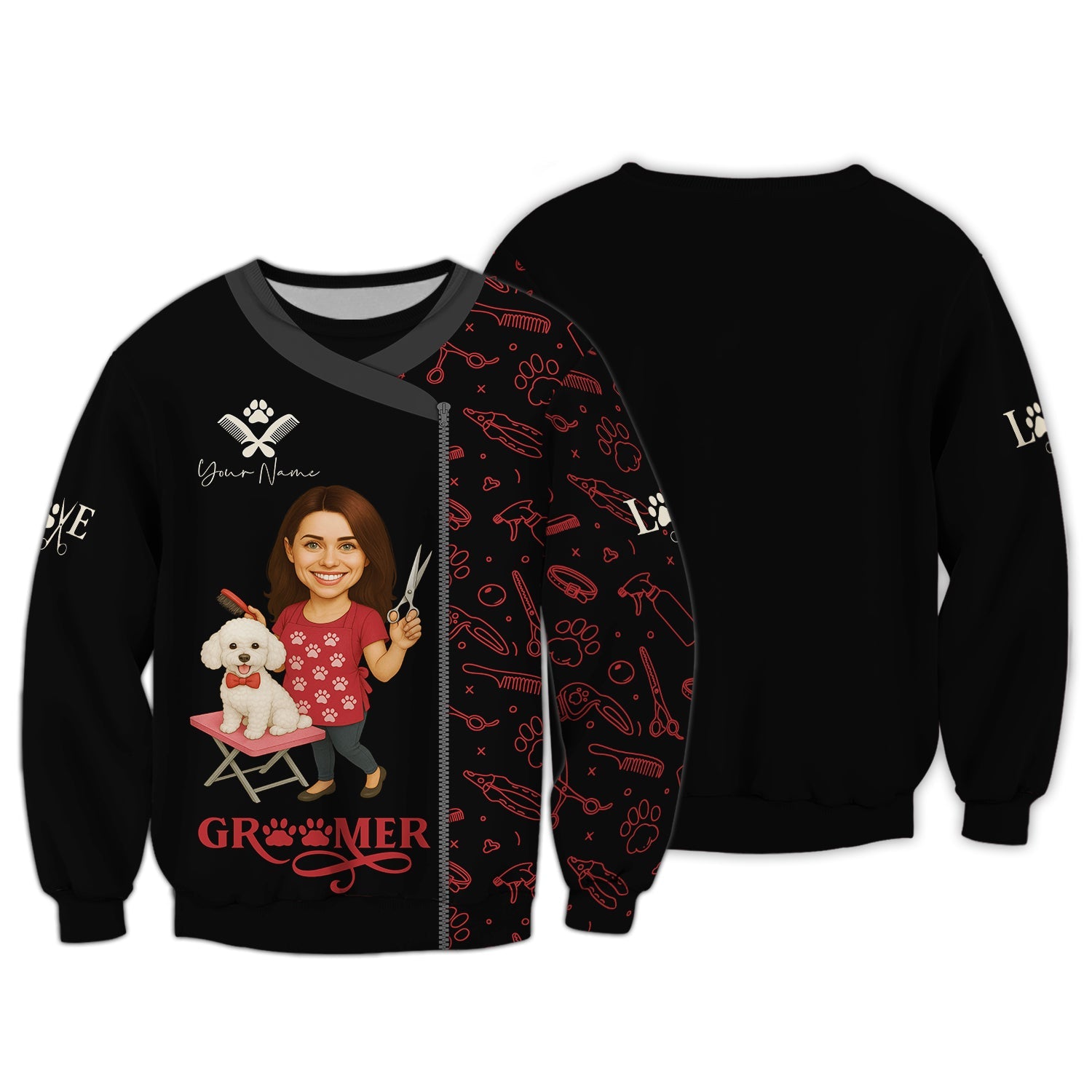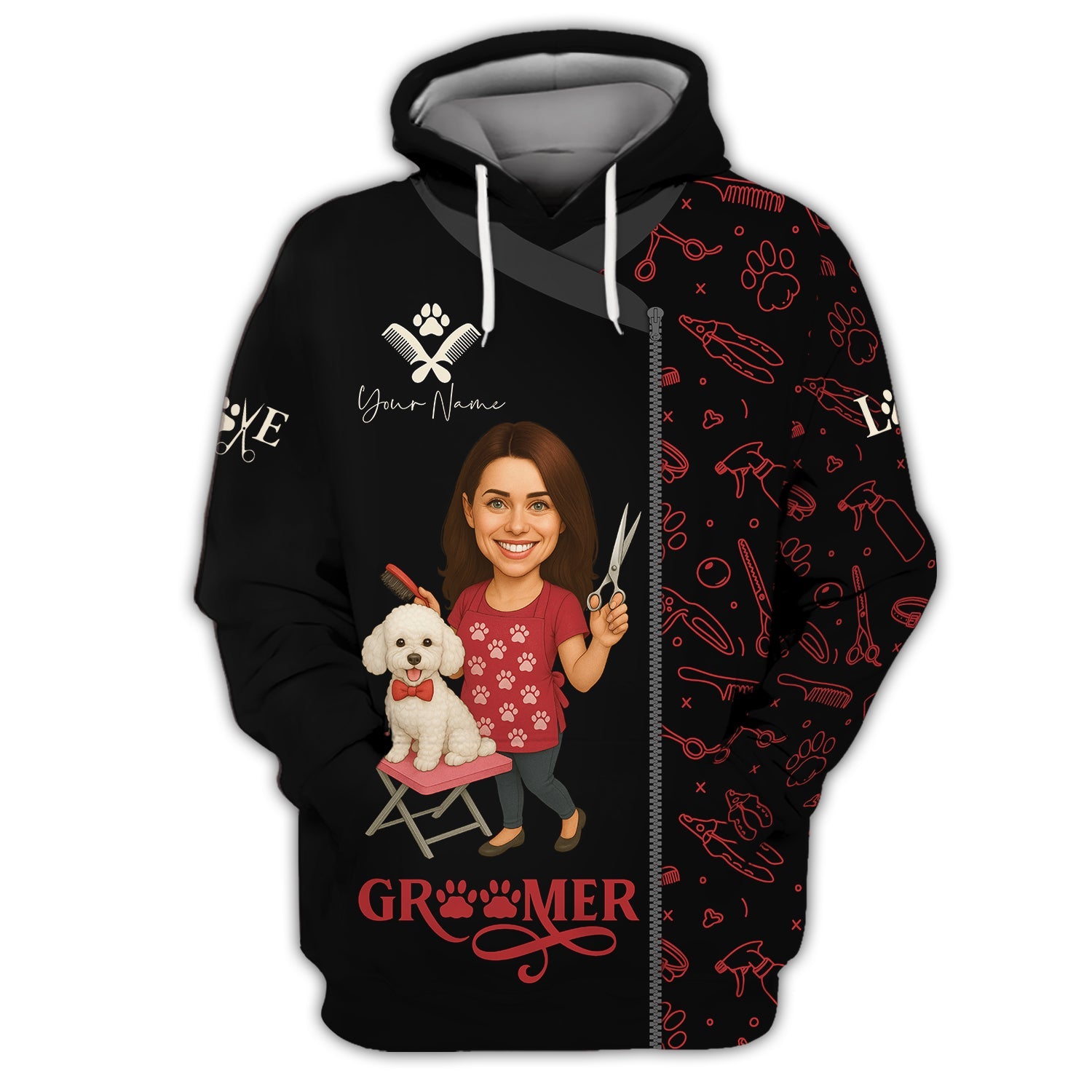 Custom Face Groomer T-Shirt, Dog Grooming Shirts, Groomer Uniform For Pet Lover