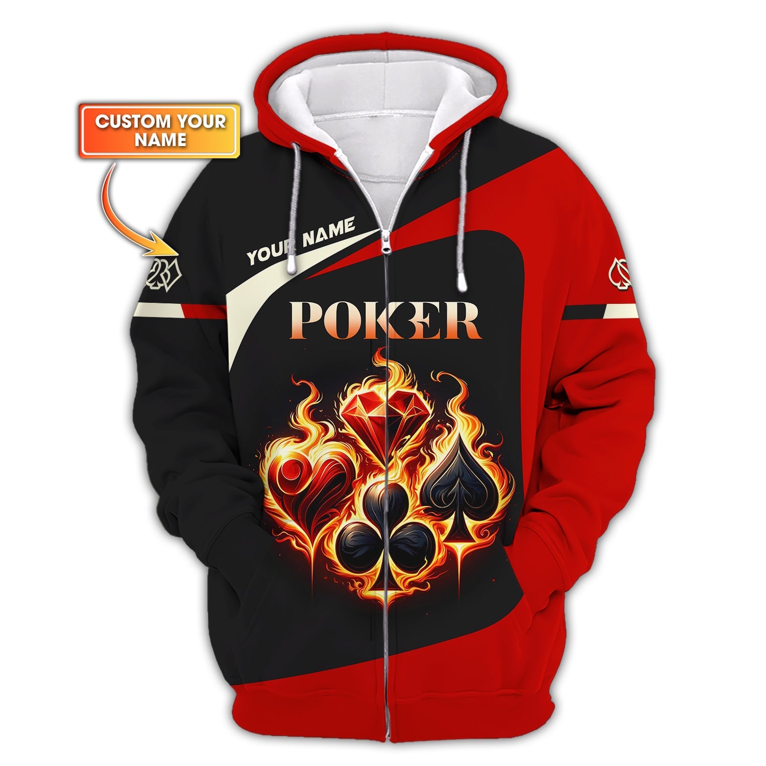 ♠️♦️ Show off your passion for poker with our exclusive AOP (All Over Print) Poker T-Shirts, Polo Shirts, Sweatshirts, and Hoodies – fully customizable with your name! ♣️♥️ Whether you're a professional poker player, a casino enthusiast, or just love the thrill of the game, our high-quality apparel is designed to make a bold statement at the table or on the streets.