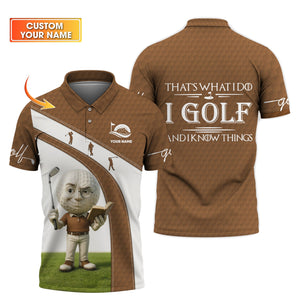 Custom Golf Polo Shirts, Cute Golf Ball Character Tee Gifts for Dad, I Golf And I Know Things