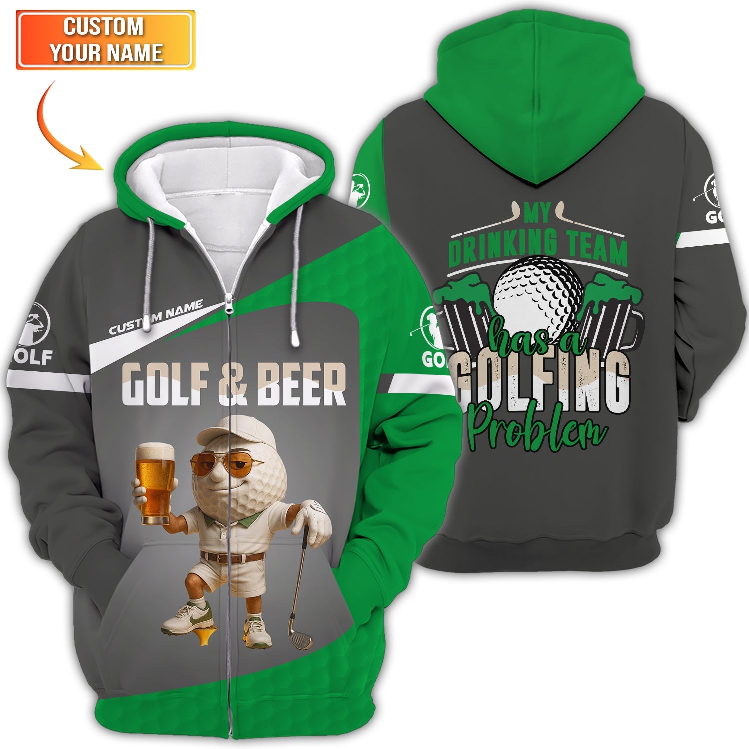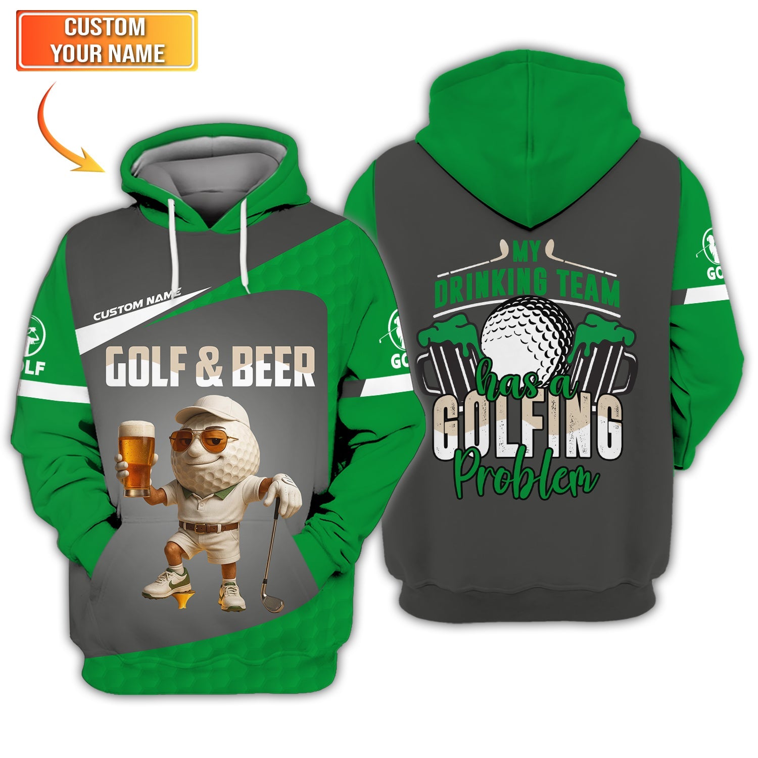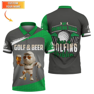 Custom Gray Green Golf & Beer Shirt – Funny Drinking Team Golfing Problem Tee