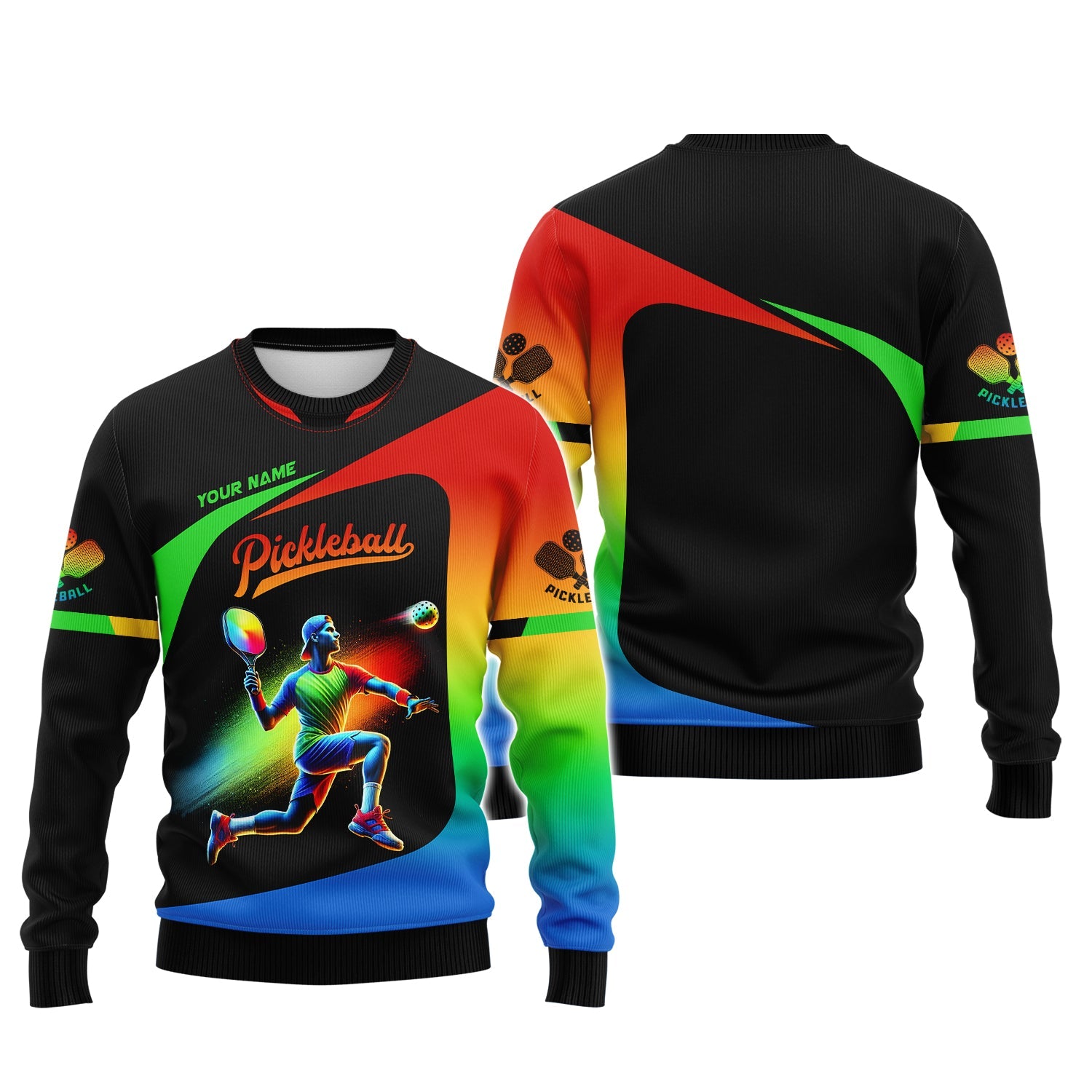 Custom Pickleball Player With Multicolor Effect T-Shirt, Gift For Pickleball Fan