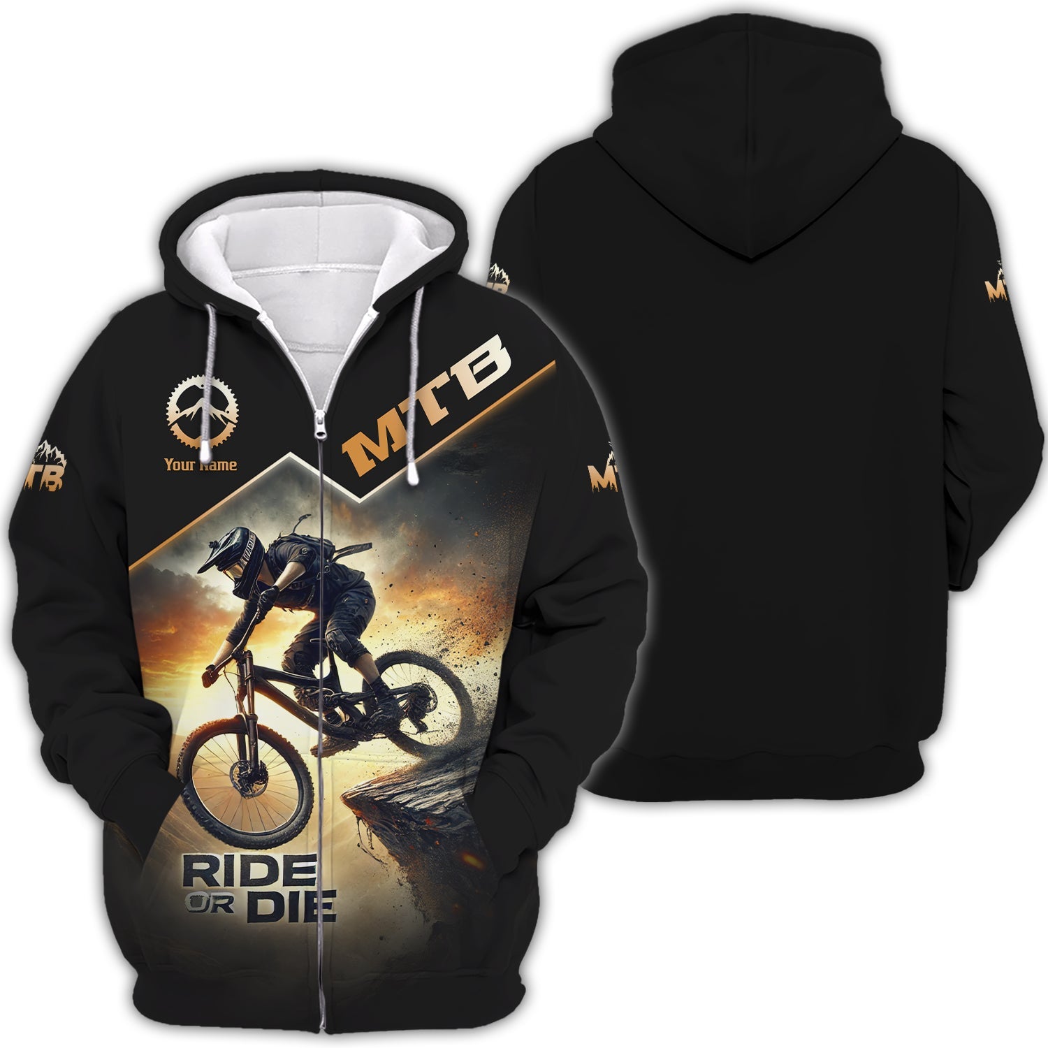 Custom MTB Ride or Die Sunset & Dramatic Background T Shirt, MTB Cycling Shirts