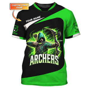 Custom Name Archer with Glowing Bow Design 3D T Shirt, Gift for Archers