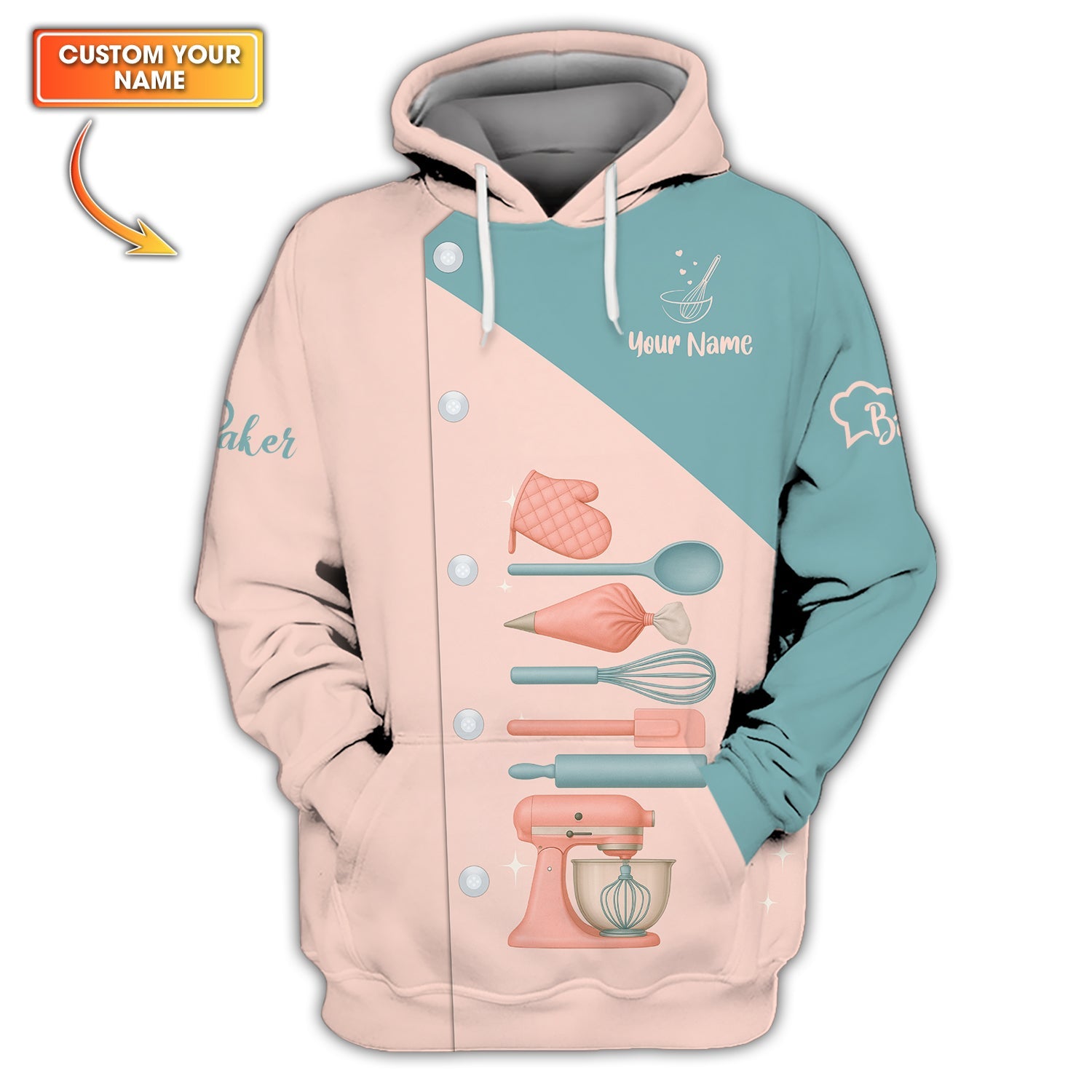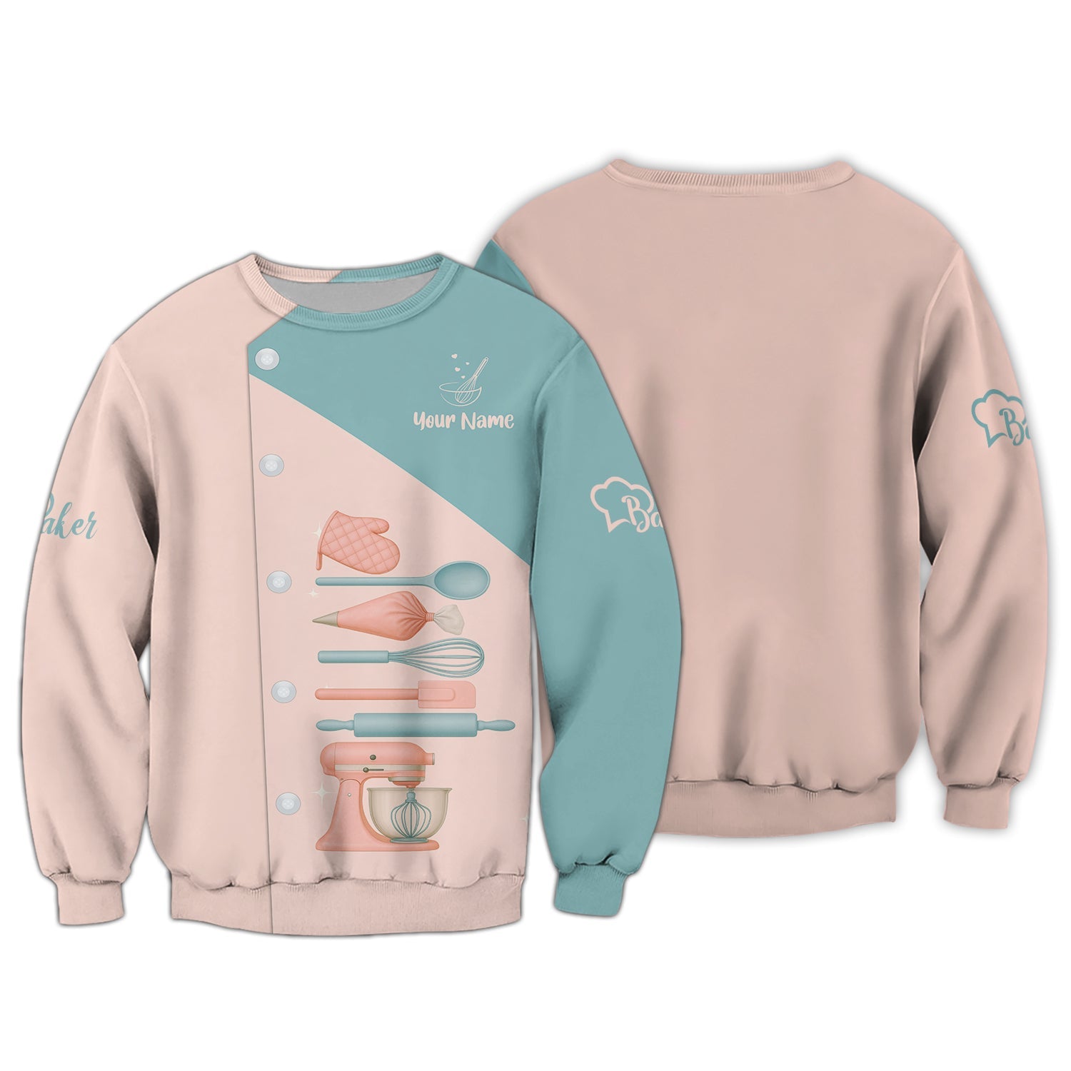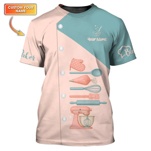 Custom Name Baker Uniform - Bakery Shirt With Baking Tools - Personalized Bakers Shirt