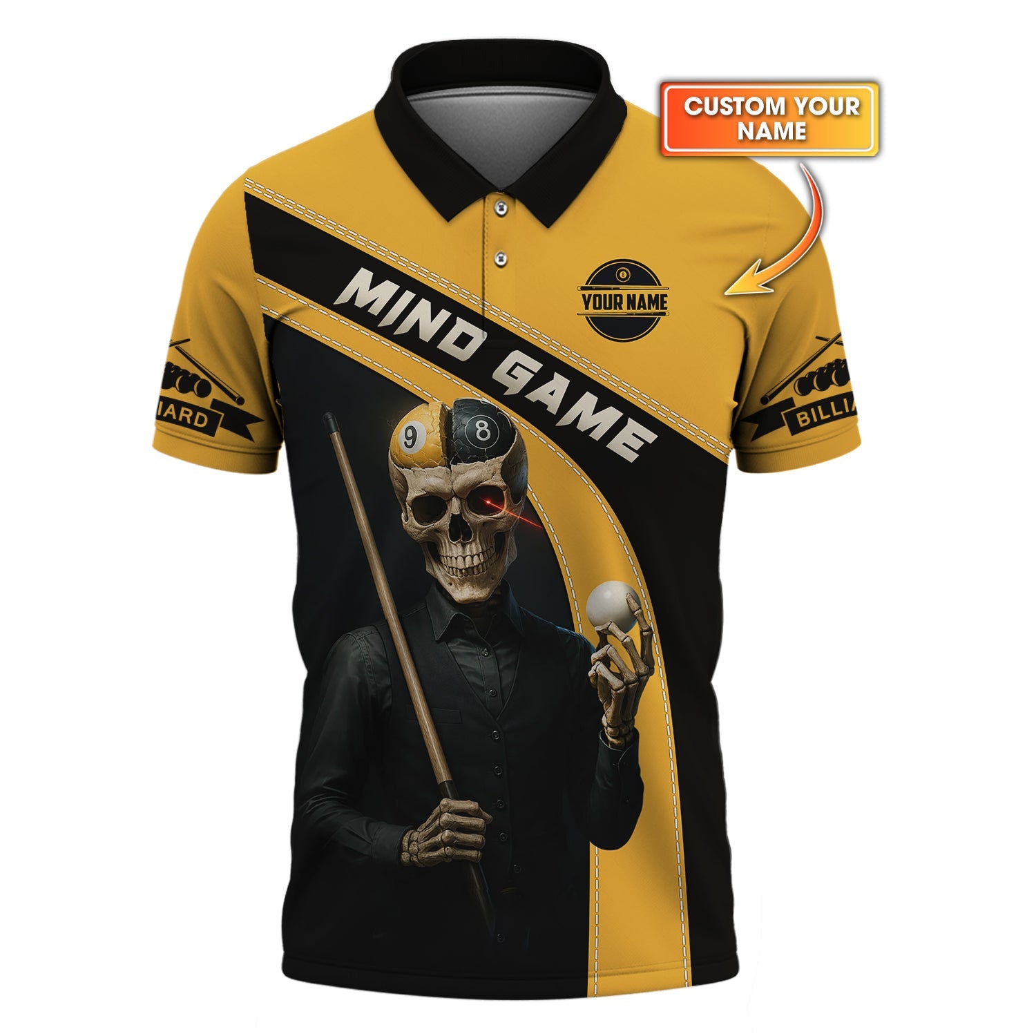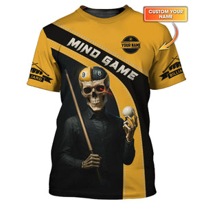 Custom Name Billiard Shirt – Skeleton Skull Design – Mind Game 9 Ball Pool Tee