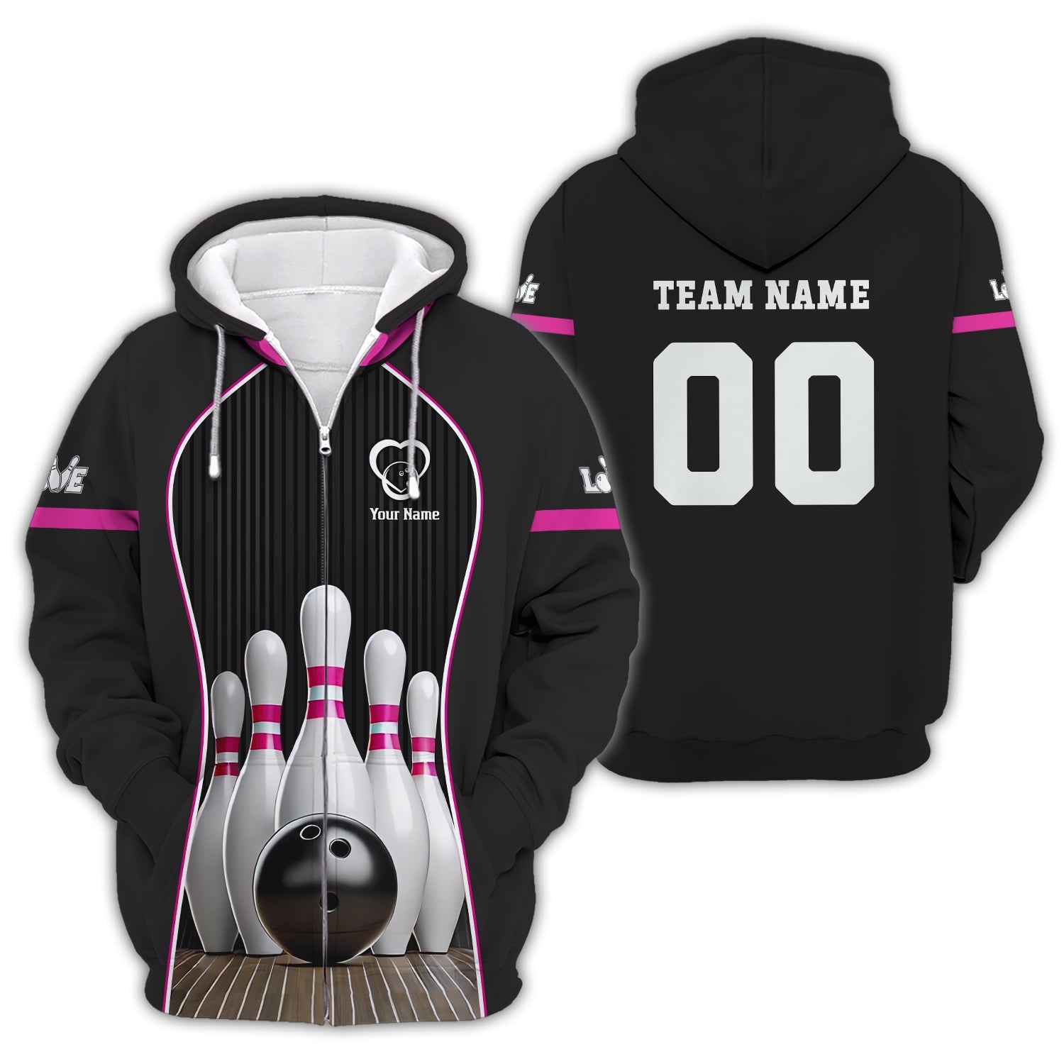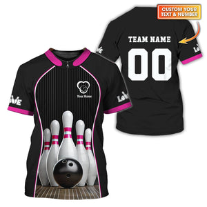 Custom Name Bowling T Shirt, 3D Bowling Pin & Ball Design, Bowling Presents